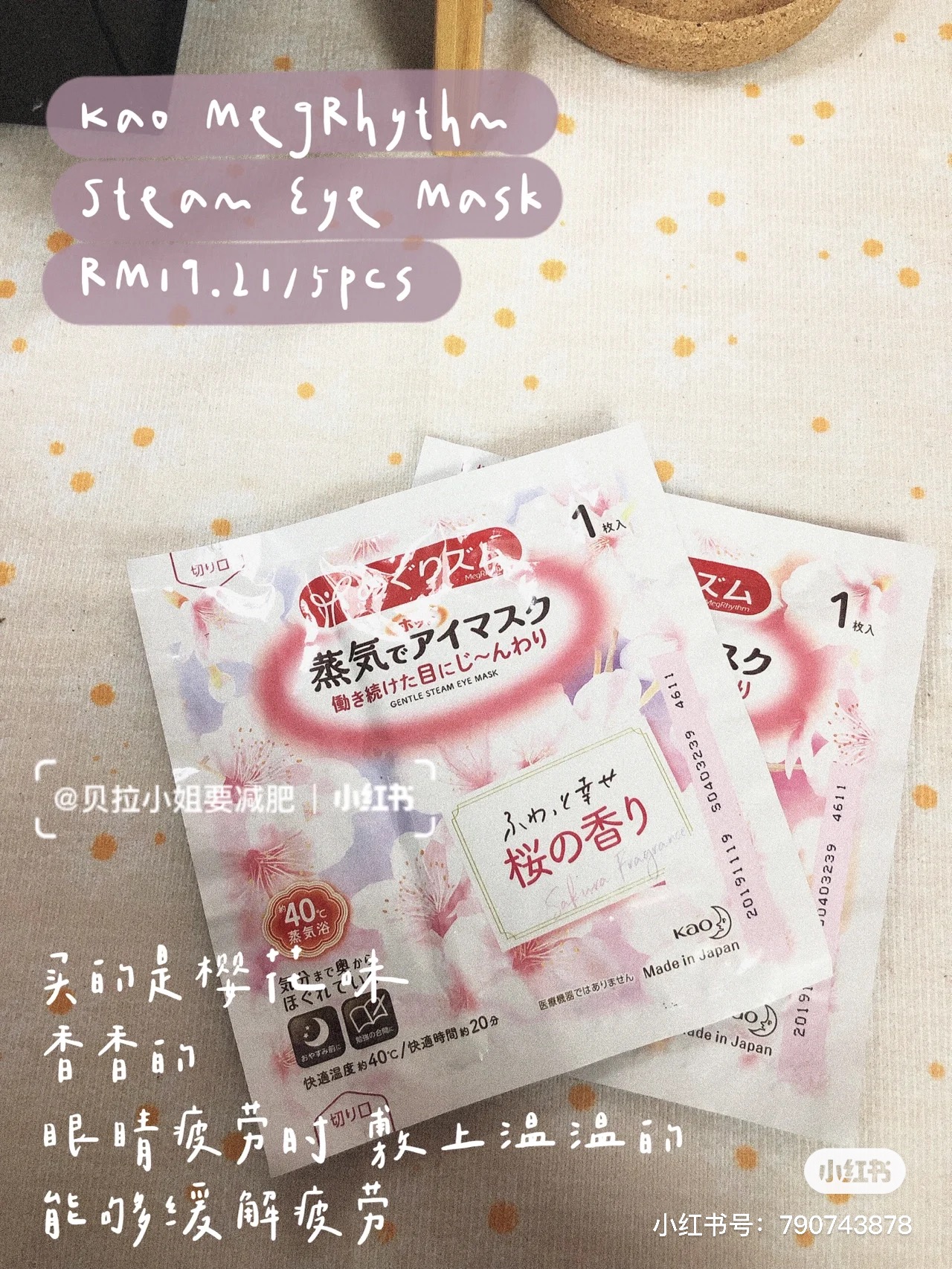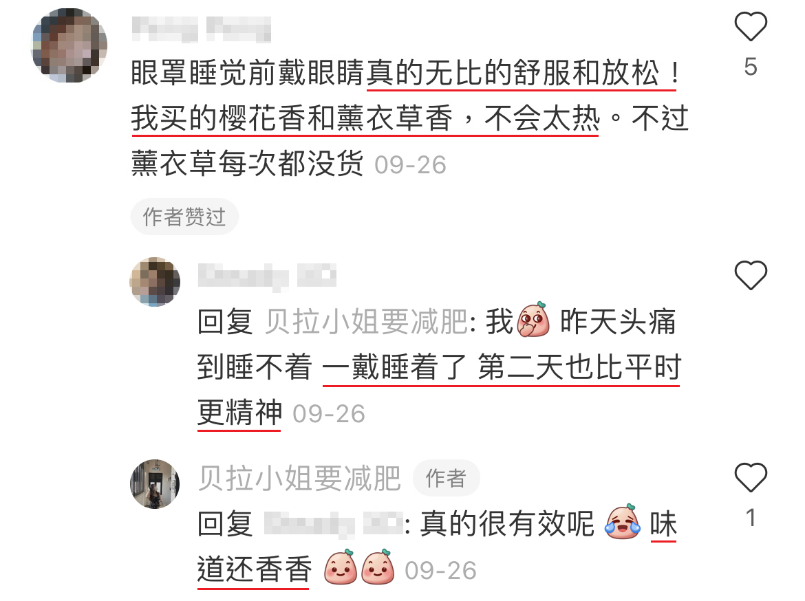 我买的是樱花味的,眼睛特别疲劳的时候就会在睡前敷上它,温温的感觉不会过热。不知道是不是心理作用,敷完后眼睛舒服很多,会更帮助入眠!