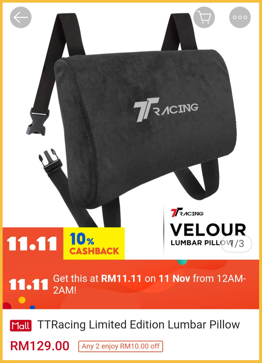 ▪ TTRacing Limited Edition Lumbar Pillow – RM129 RM11.11