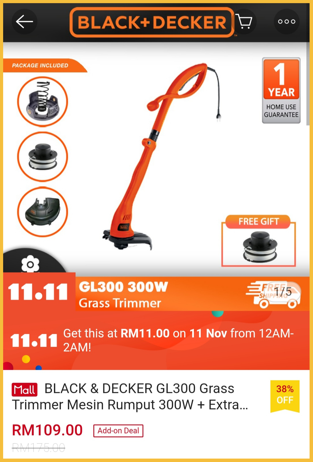 ▪BLACK & DECKER GL300 Grass Trimmer + Extra Spool Line – RM175 RM11