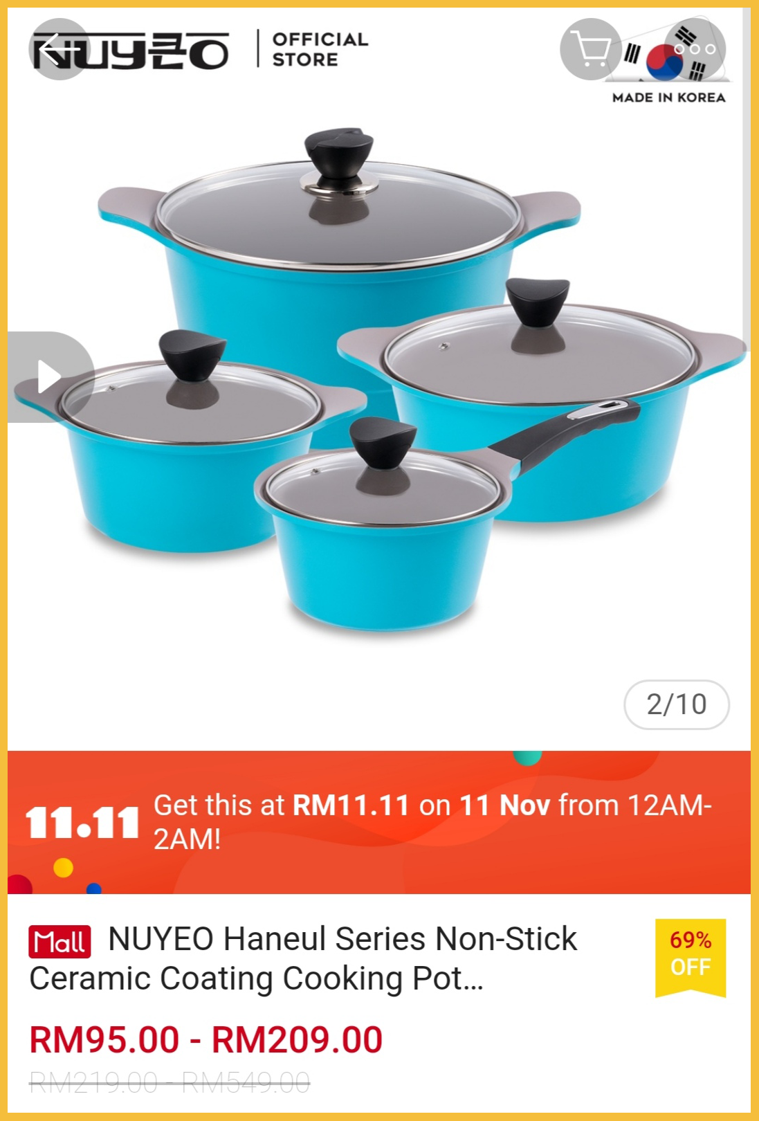 ▪ NUYEO Haneul Series Non-Stick Ceramic Coating Cooking Pot (18cm) – RM219 RM11.11