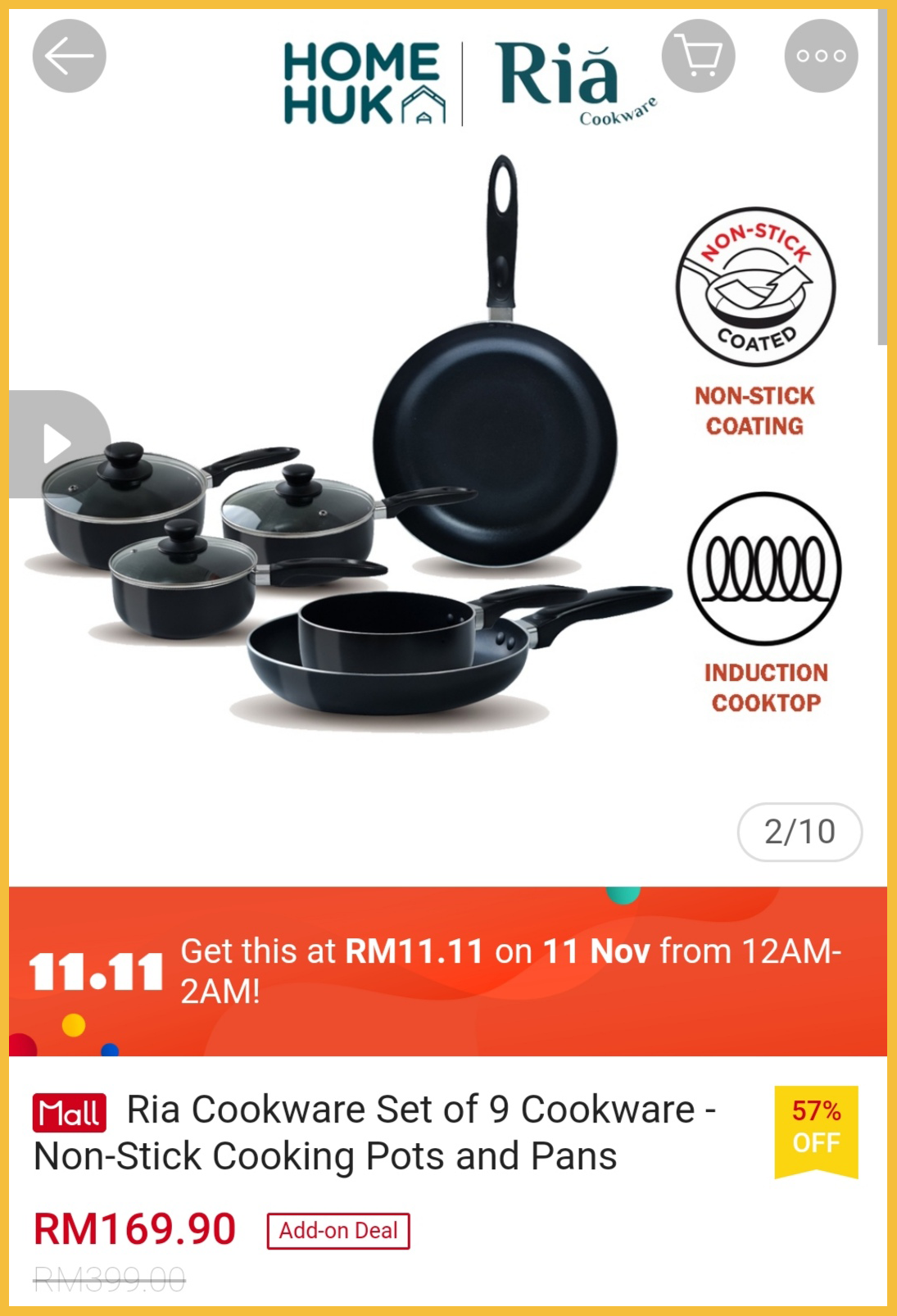 ▪ Ria Cookware Set of 9 Cookware – RM399 RM11.11