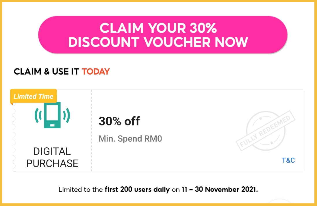 ※ 虽然优惠券已经被人领完!但你可在优惠期间的每日凌晨12am 开始领取优惠券(直到兑换完为止)!每日仅限首200 位用户,先领先得!【点击这里】