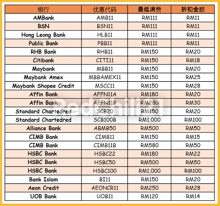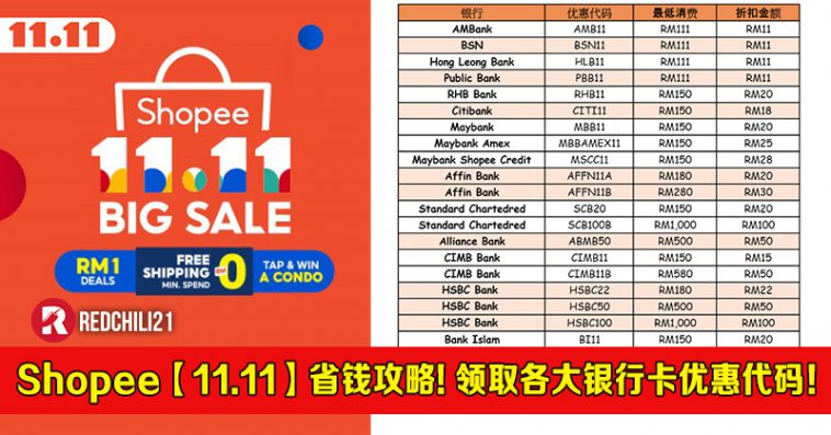 ▼ 让你一次看完,Shopee 11月11日推出银行卡Promo Code 完整列表(直接点击领取银行卡优惠券【点击这里】)