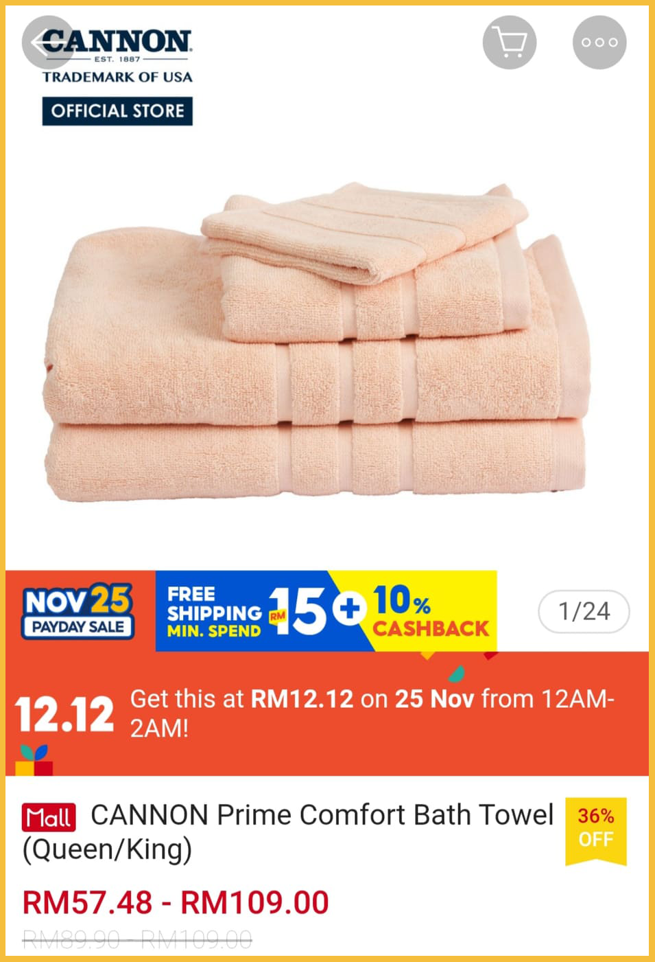 ▪ CANNON Prime Comfort Bath Towel (Queen) – RM57.48 RM12.12