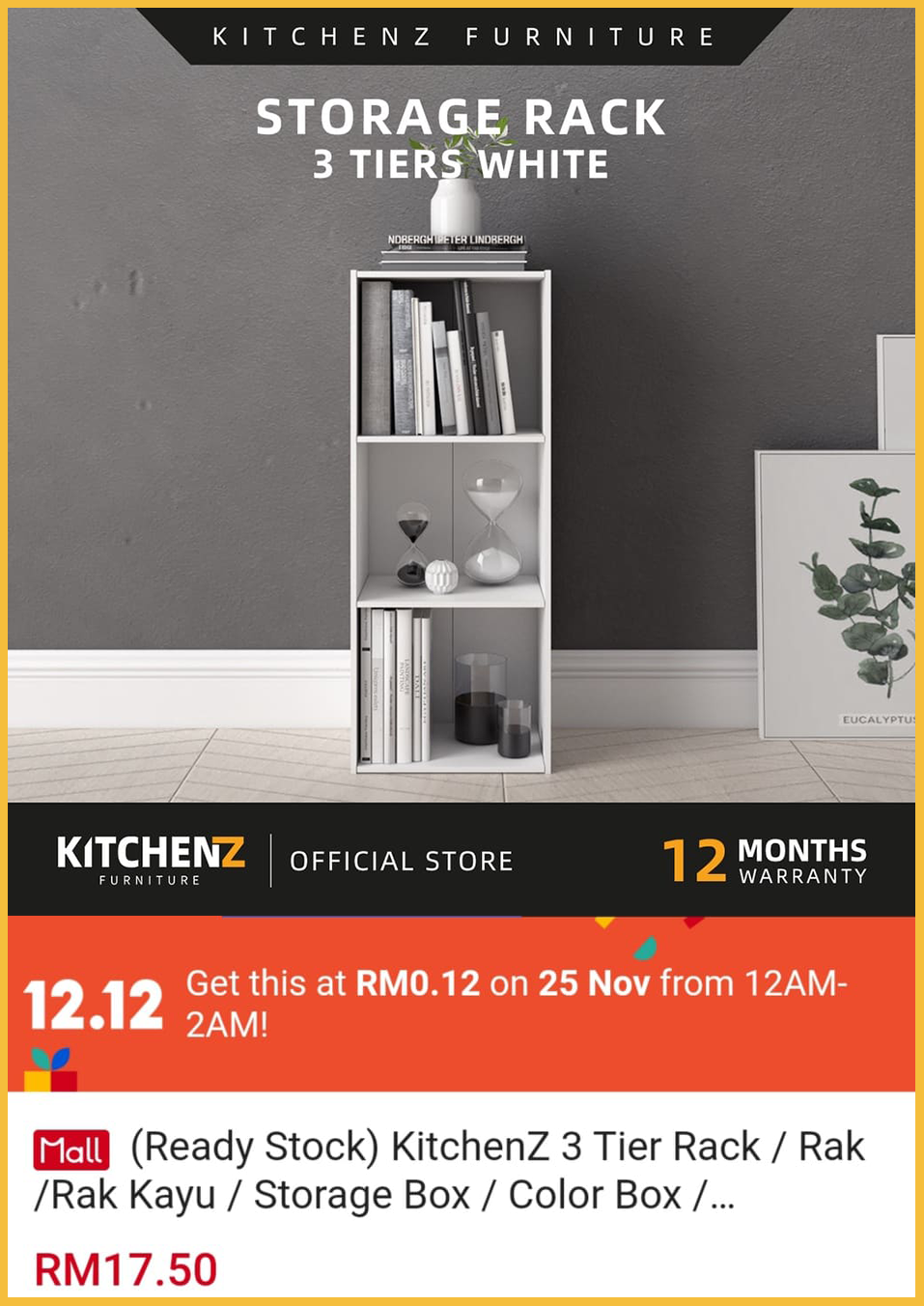 ▪ KitchenZ 3 Tier Rack – RM17.50 RM0.12