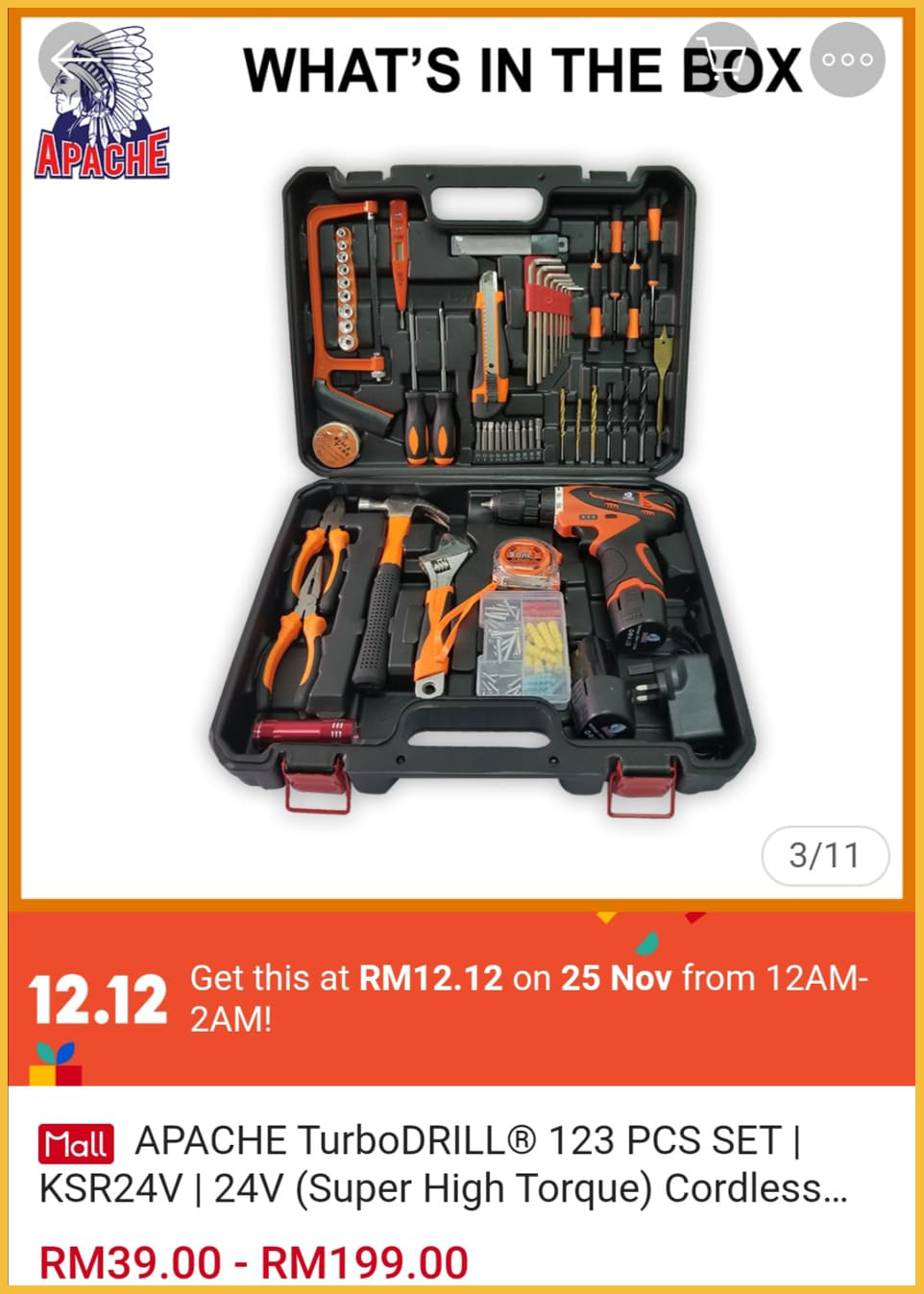 ▪APACHE TurboDRILL® 123 PCS SET – RM179 RM12.12