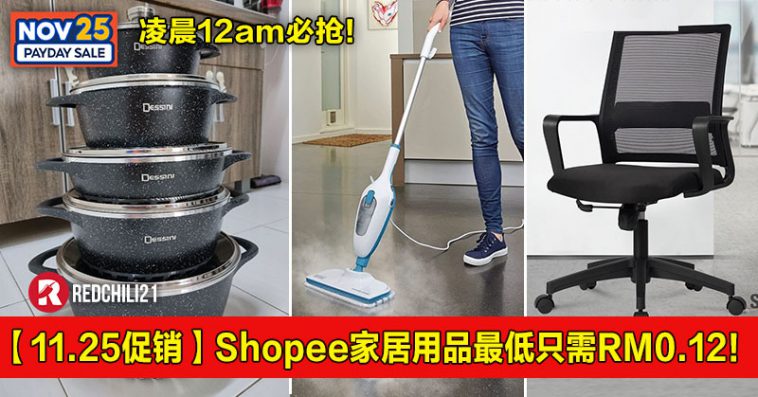 Shopee 【11.25】发薪促销日即将来临了,在这天除了推出RM25 超值商品之外,还推出家具用品限时优惠最低RM0.12起!