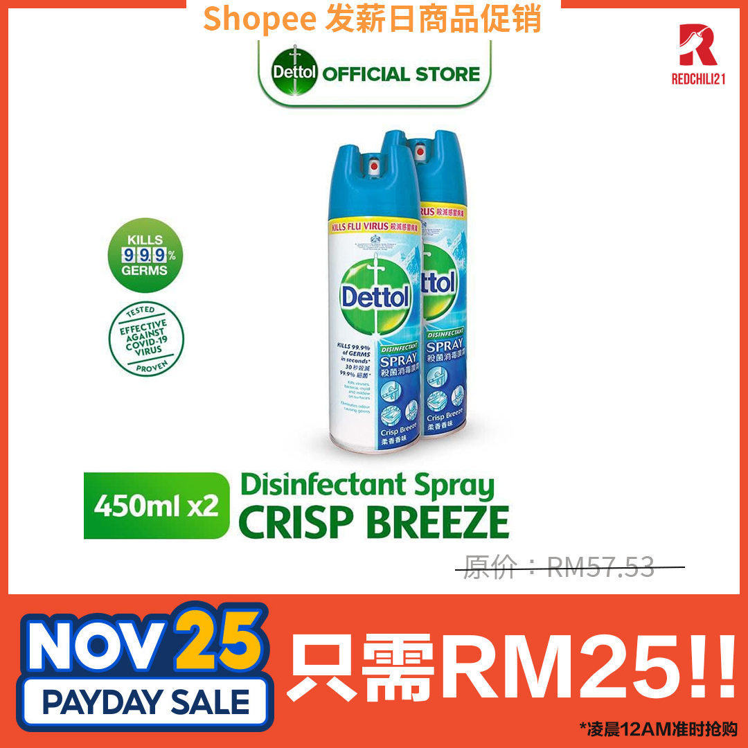 ▪ Dettol Disinfectant Spray Crisp Breeze 450ml [Twin Pack]