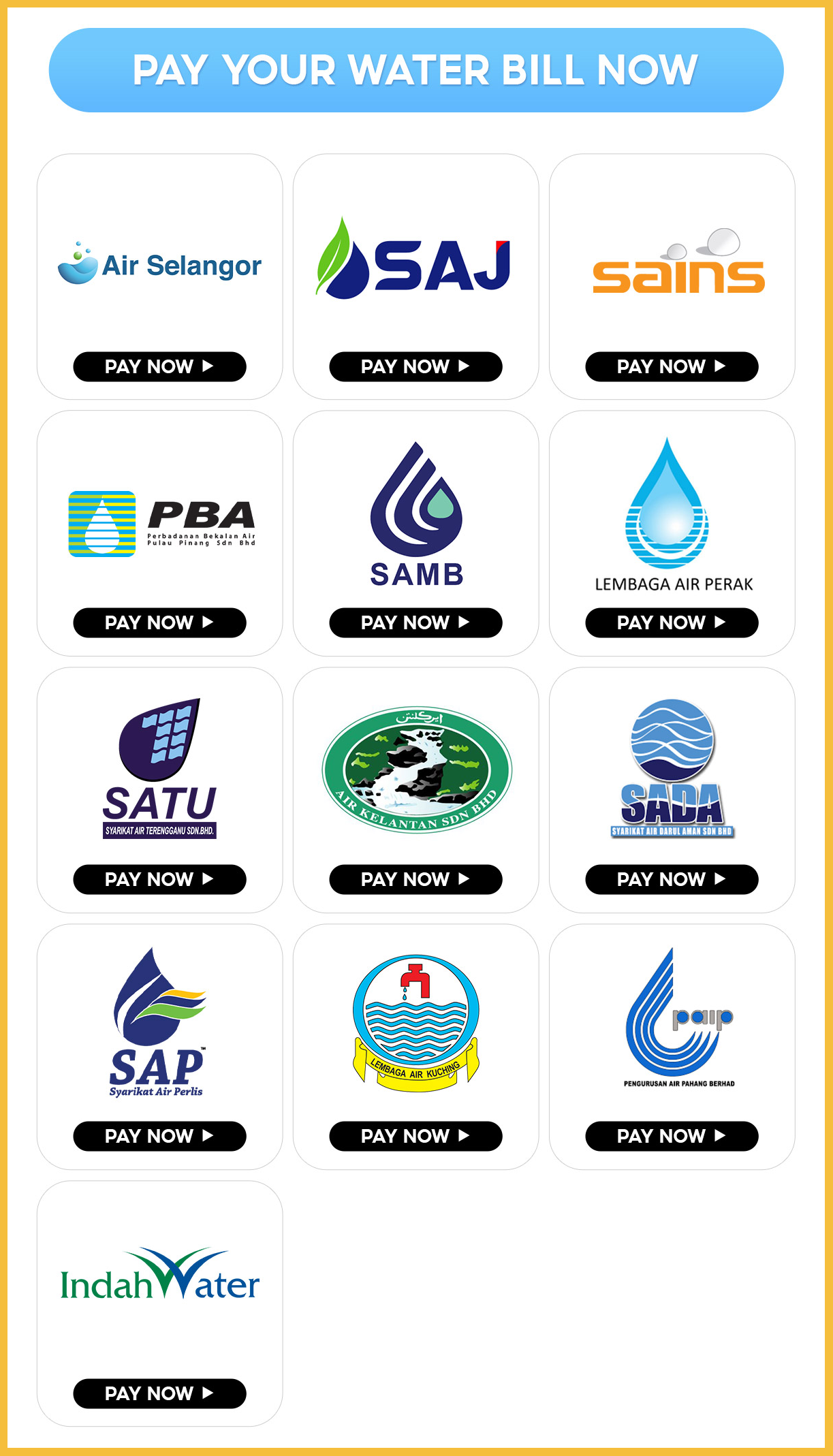 ▼ 你可缴付以下水费账单:Air Selangor、SAJ、PBA、SADA等!