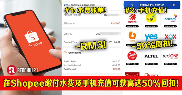从即日起至11月10日,Shopee 推出2项缴付水费账单及充值手机优惠,享有高达50%回扣!