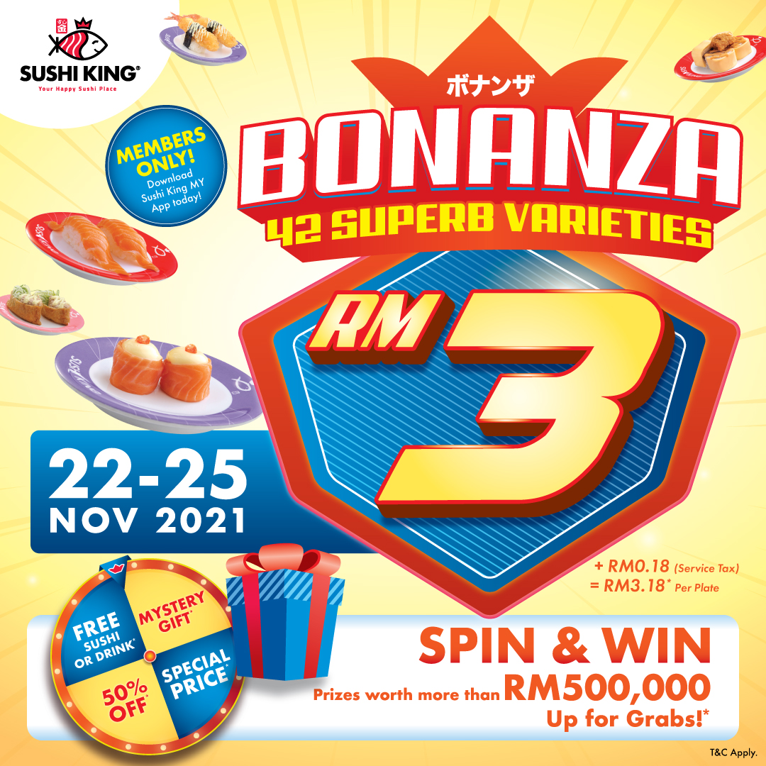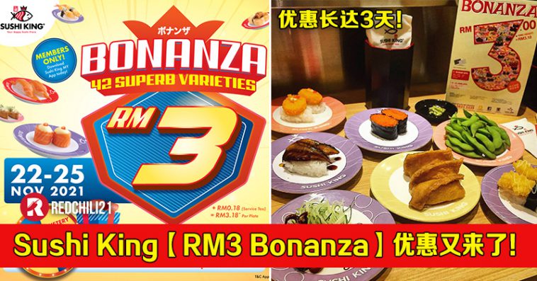 这次Sushi King Bonanza 以往常一样售价一碟只需 RM3.18(包括6%服务税)!