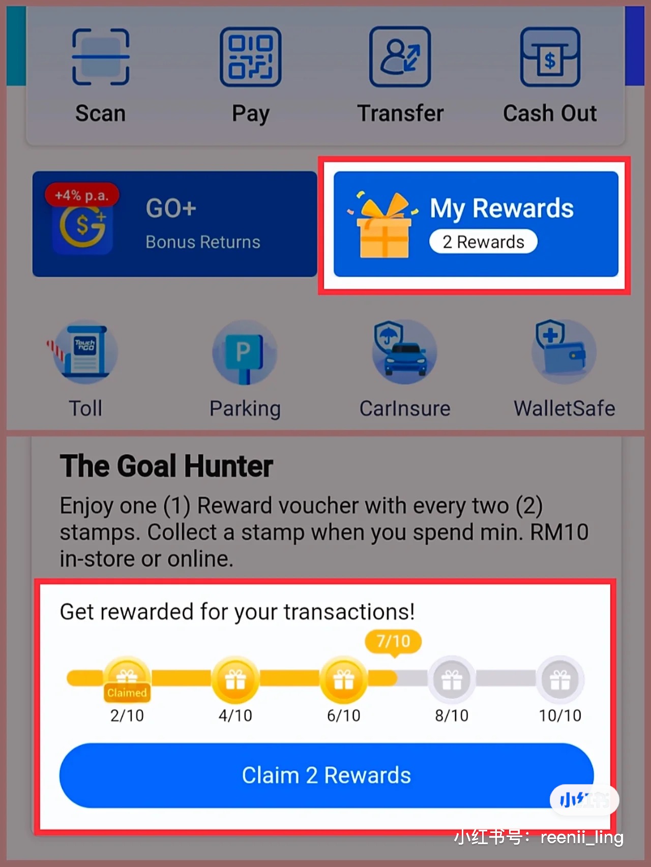 ▼ Step 1:打开 Touch ‘n Go eWallet,点击 “My Rewards”。