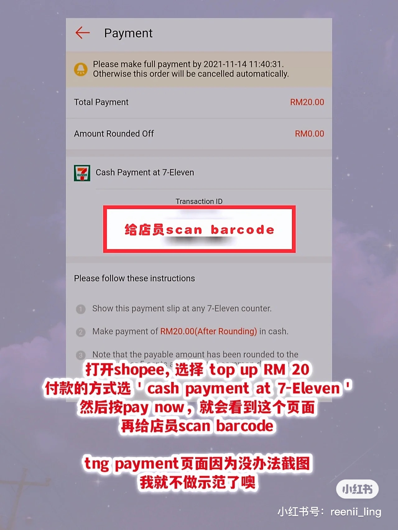 ▼ Step 3:进入 Shopee 充值 Shopee Pay,充值方式选择 “Cash Payment at 7-Eleven”。