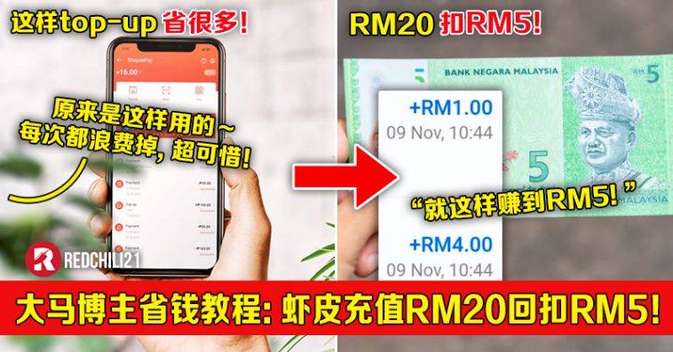 Shopee Pay 充值RM20就能省下多达RM5?!这波神操作到底是如何办到的?现在就赶快学起来吧!