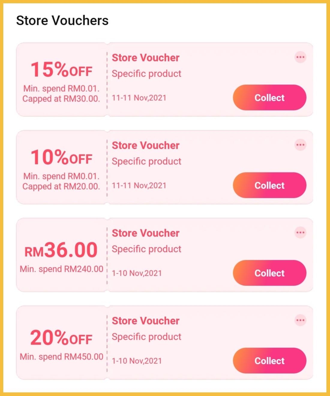 - 消费RM0.01 折扣15%(高达RM30 | 仅限11月11日12am -2am)
