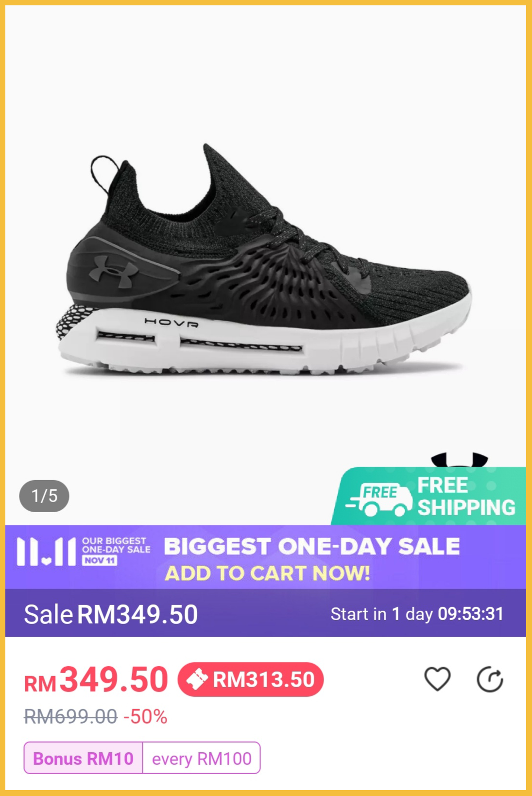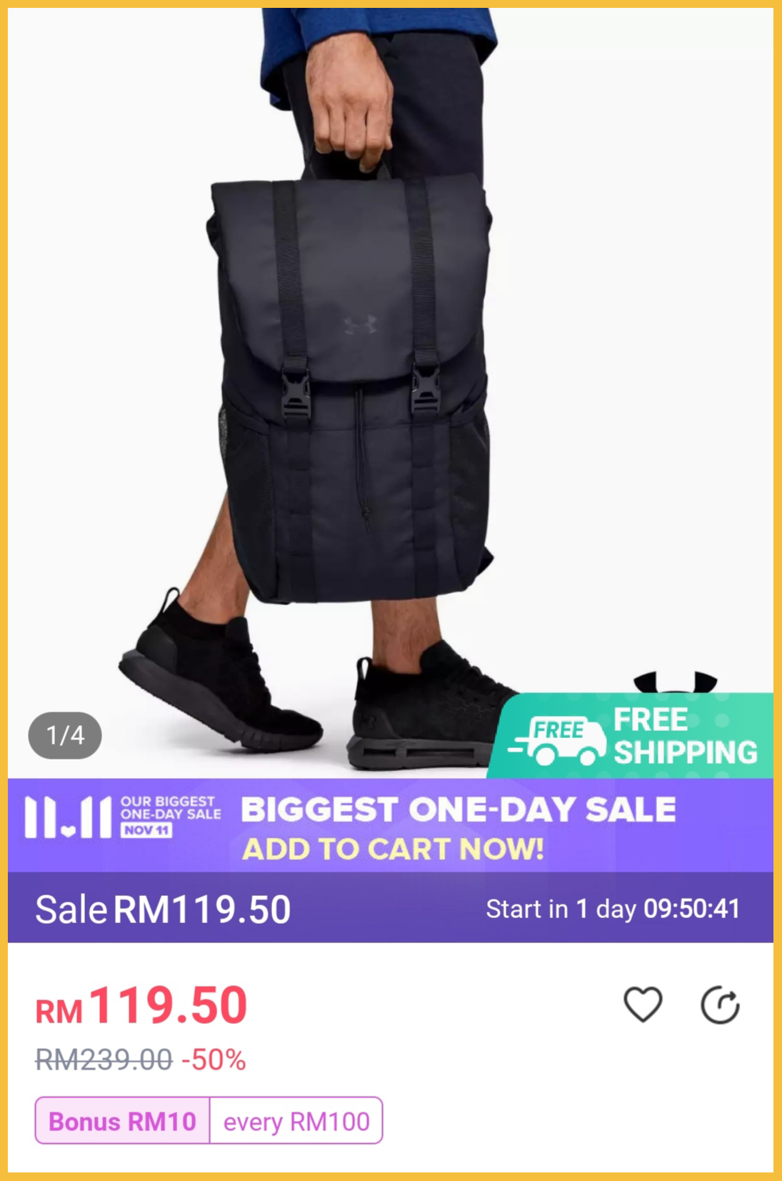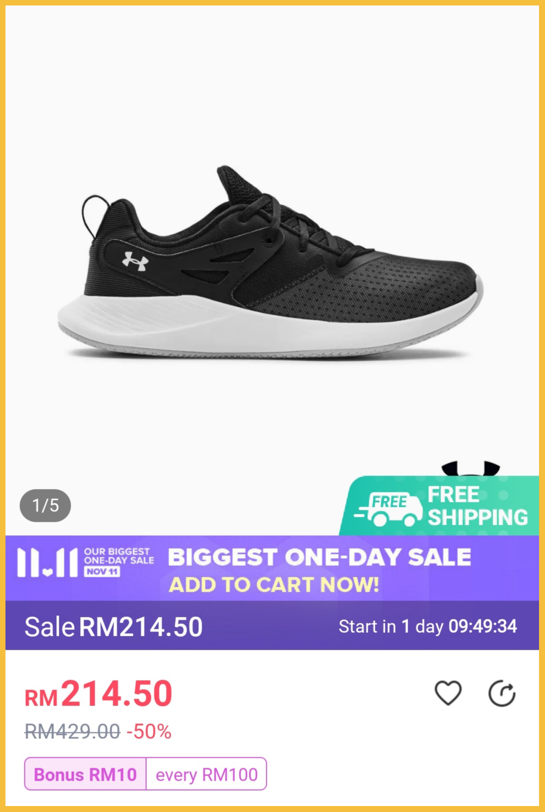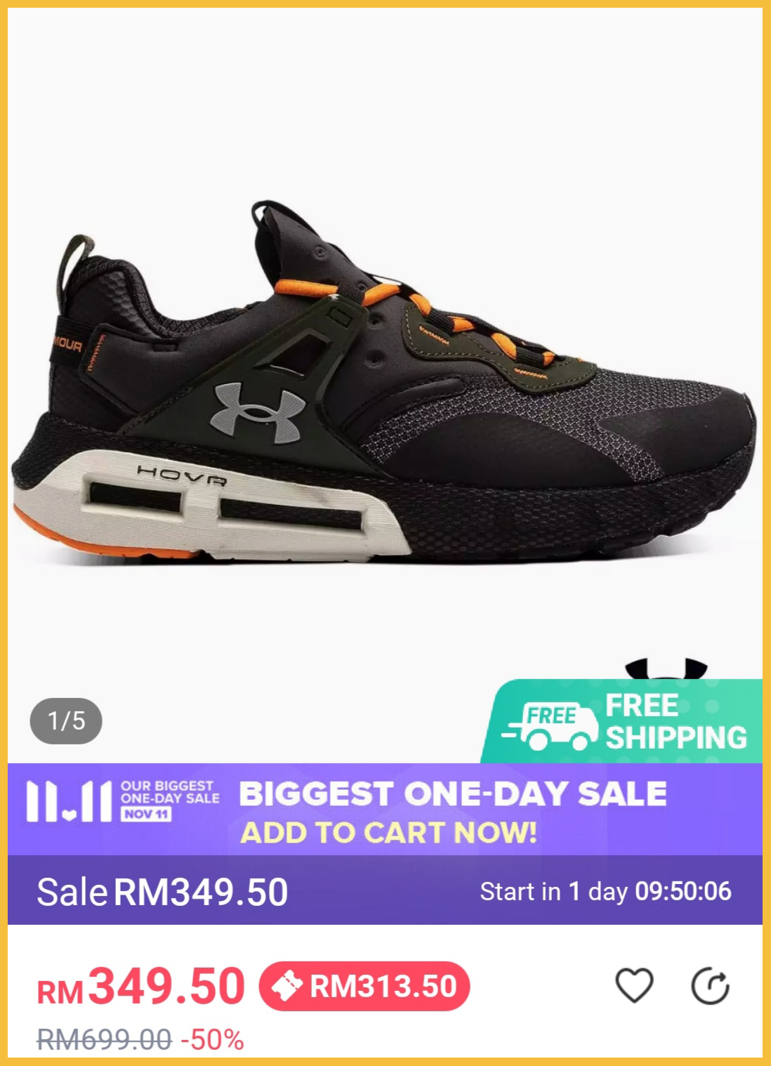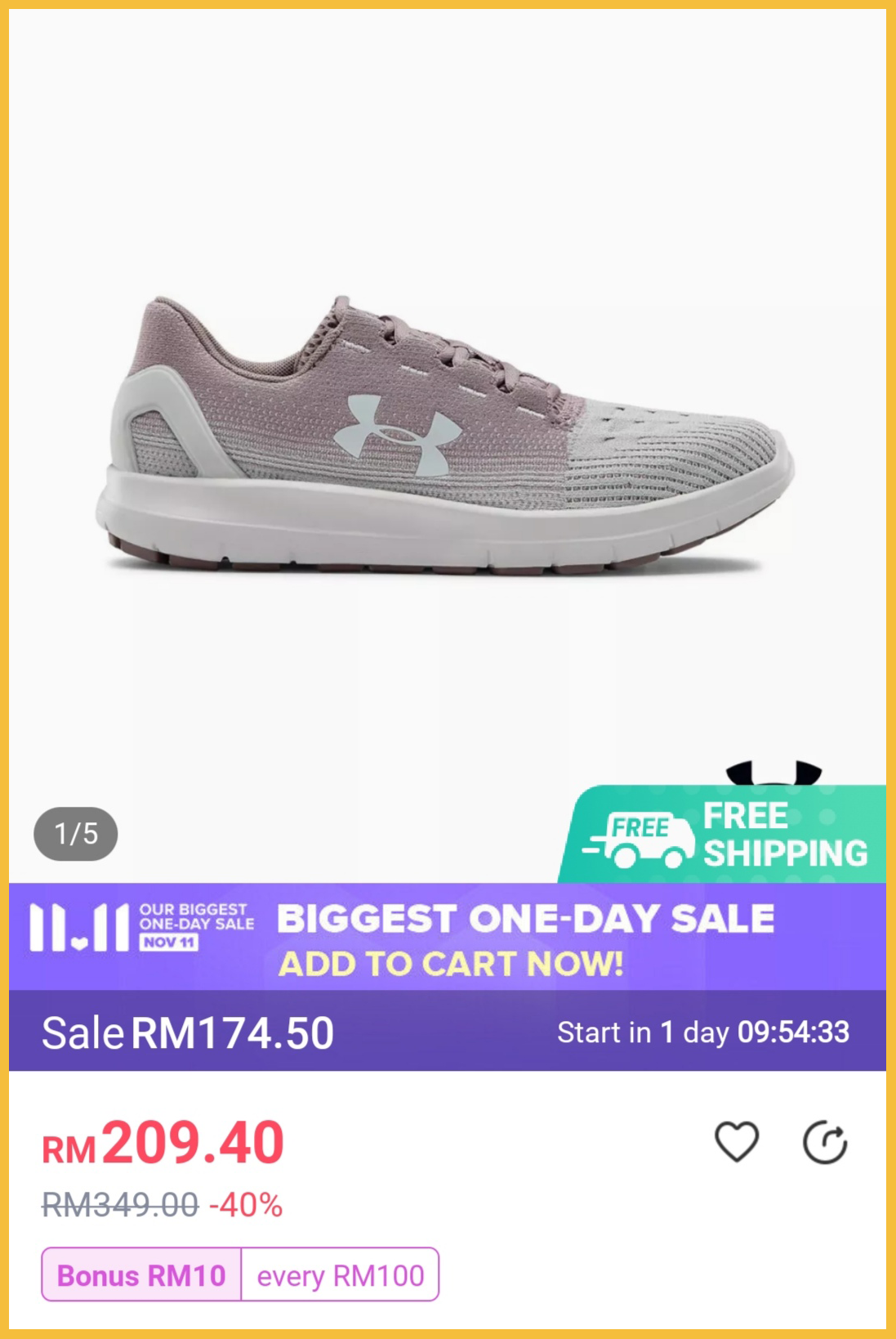 这项优惠是由Under Armour 与Lazada 联合推出【11.11】大优惠,运动商品享有高达50%折扣!购买2样额外折扣25%,购买3样商品折扣35%!