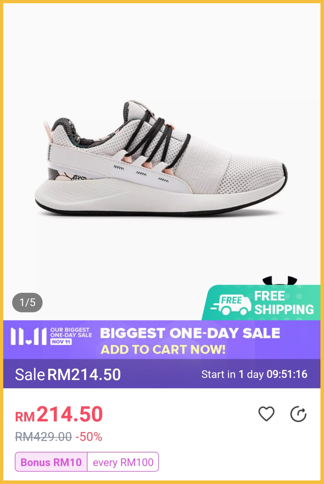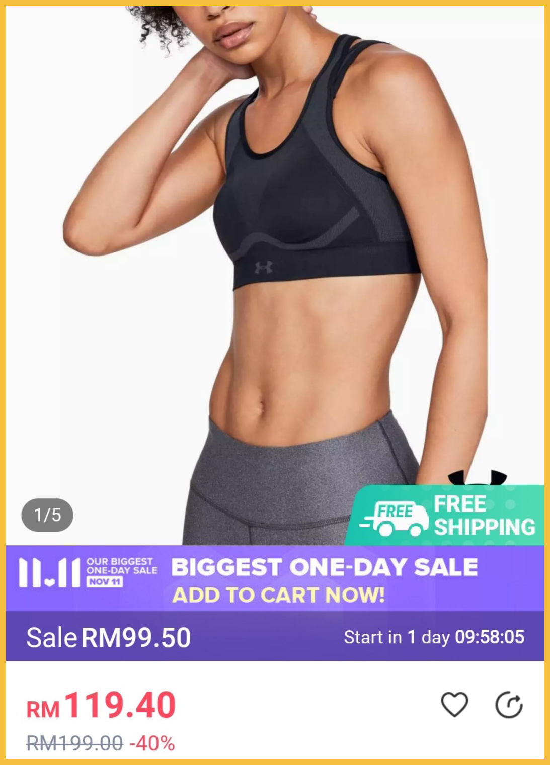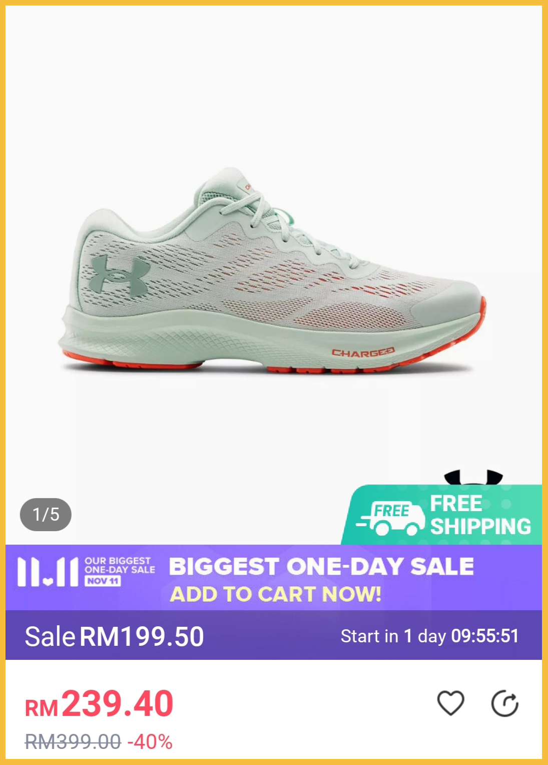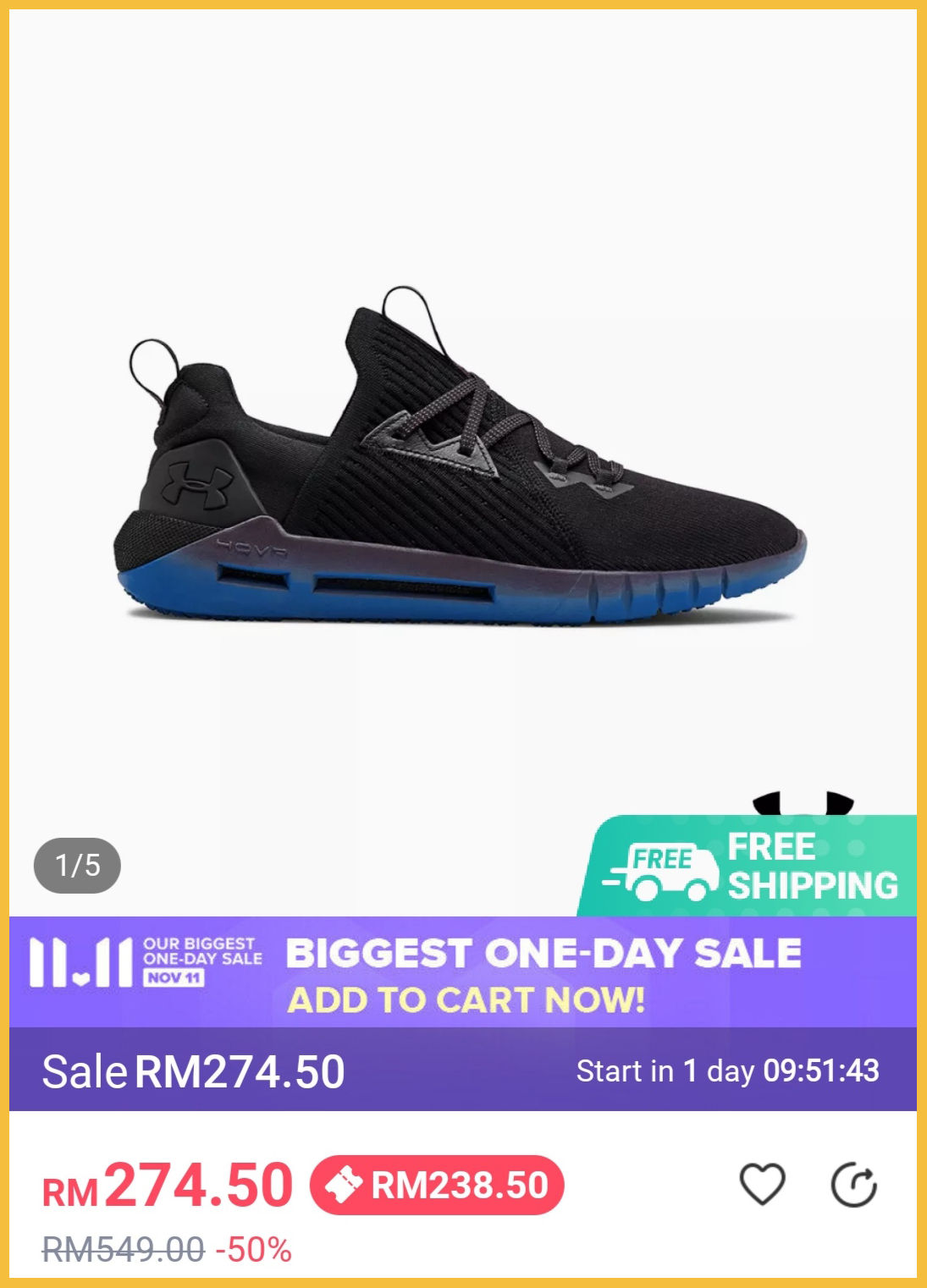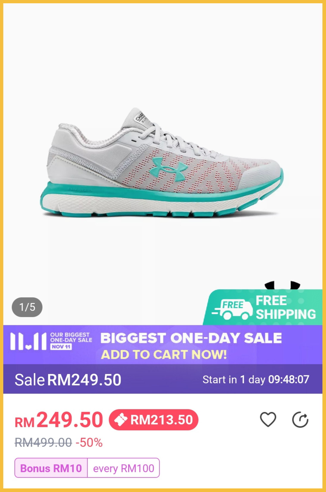 这项优惠是由Under Armour 与Lazada 联合推出【11.11】大优惠,运动商品享有高达50%折扣!购买2样额外折扣25%,购买3样商品折扣35%!