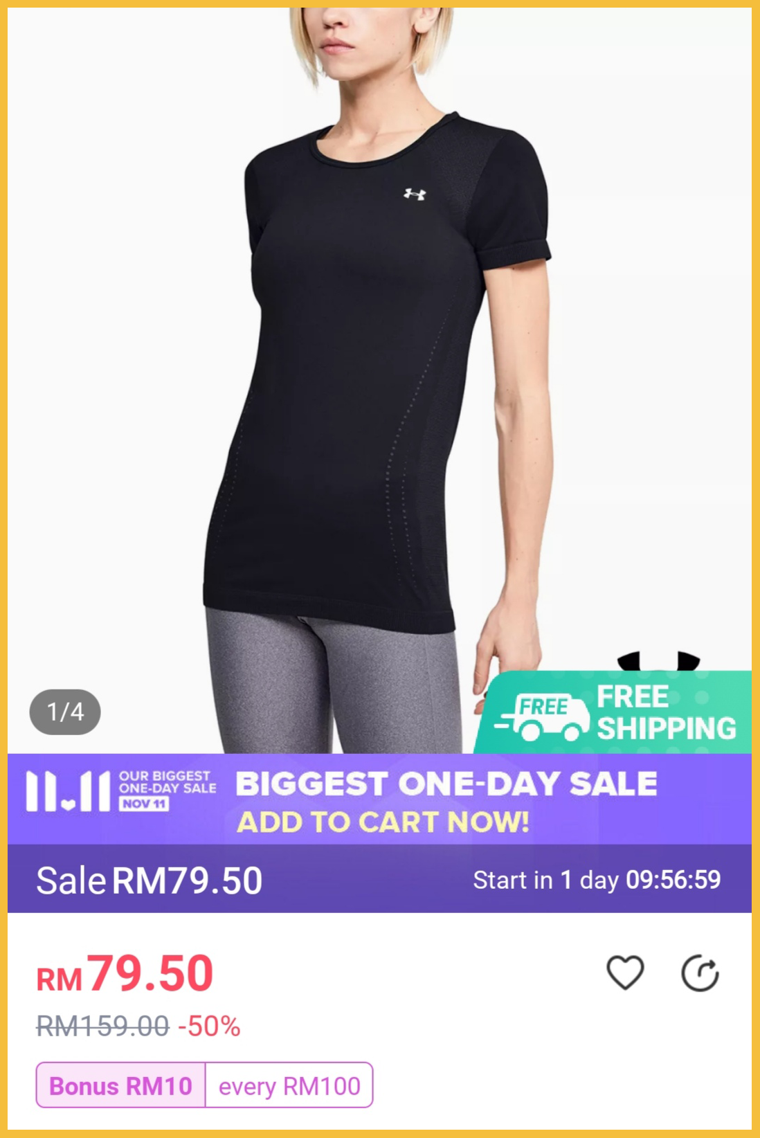 ▼ Under Armour Womens Seamless Short Sleeve – RM159 RM79.50