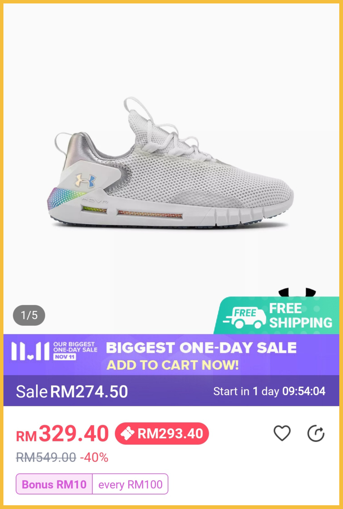 ▼ Under Armour UA Mens HOVR SLK EVO Sportstyle Shoes – RM549 RM238.50(领取店家折扣券后的价格)