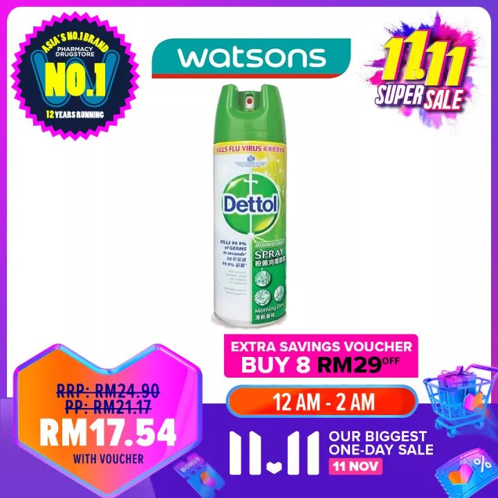 - DETTOL Disinfectant Spray Morning Dew 450ML 1s 购买:【点击这里】