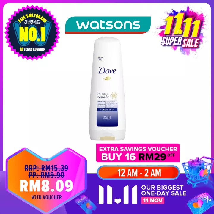 - DOVE Intense Repair Damaged Hair Conditioner 330 ml 购买:【点击这里】