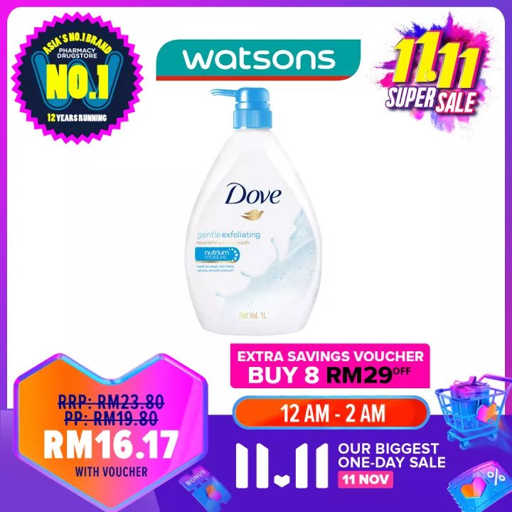 - DOVE Shower Gentle Exfoliating 1L 购买链接:【点击这里】