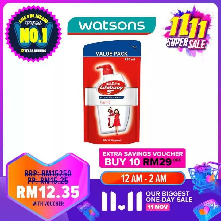 促销活动:Watsons x Lazada【11.11】大优惠!商品折扣高达85%!