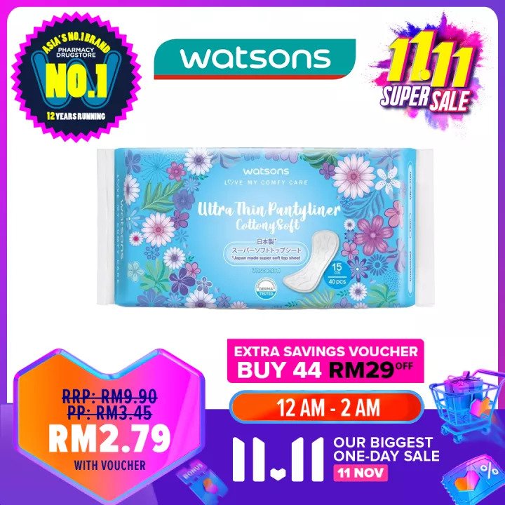- WATSONS Ultra-Thin Pantyliner Unscented 40s 购买:【点击这里】