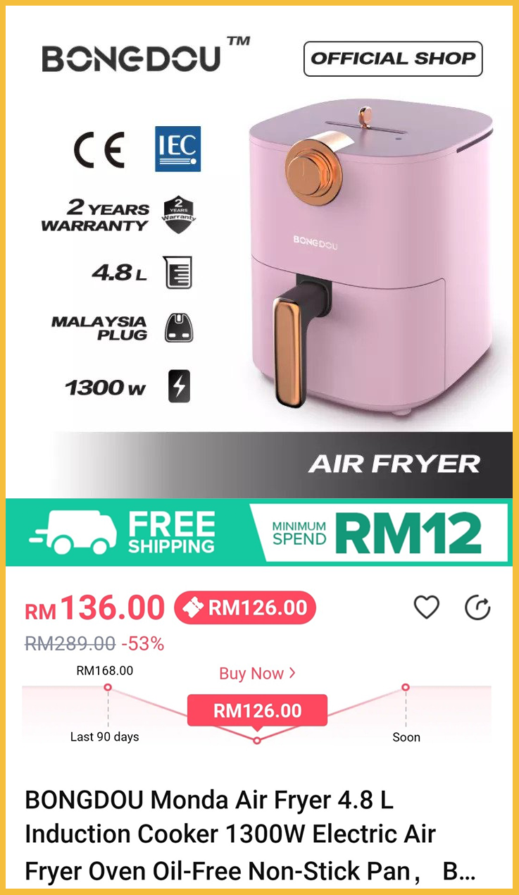 ▼ 在这里小编推荐5款销量高的气炸锅!附上价格及链接给大家!统统都是低于RM200的哦!