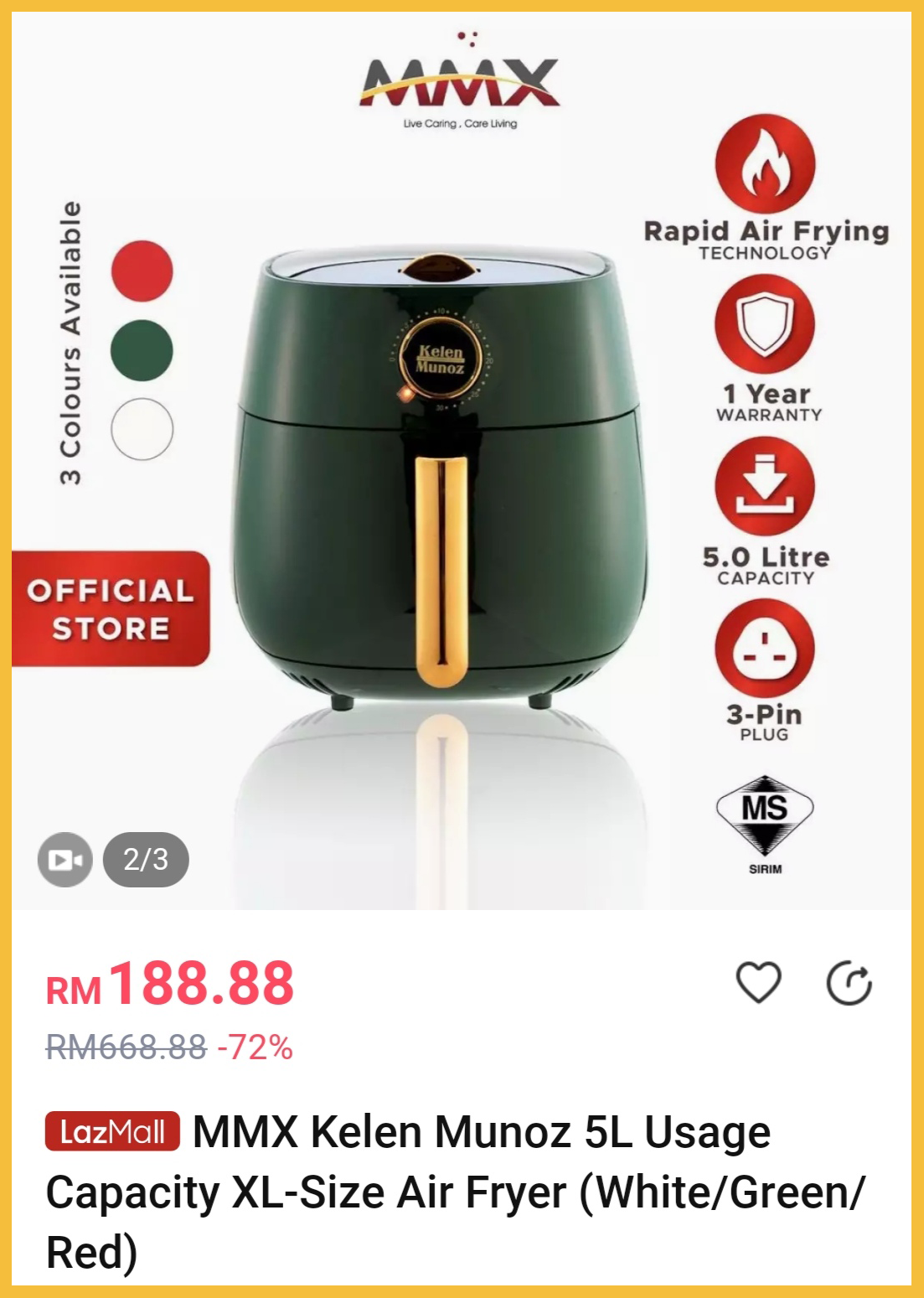 ③ Monda Air Fryer 4.8L – 售价RM126(领取优惠券后的价格)
