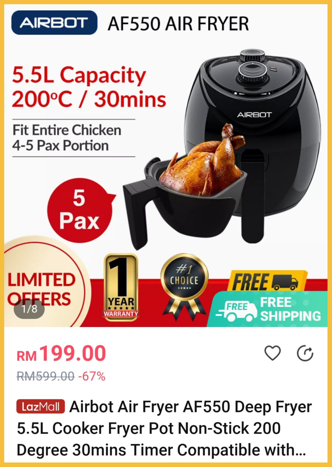 ⑤ Airbot Air Fryer (5.5L)AF550 – 售价RM199