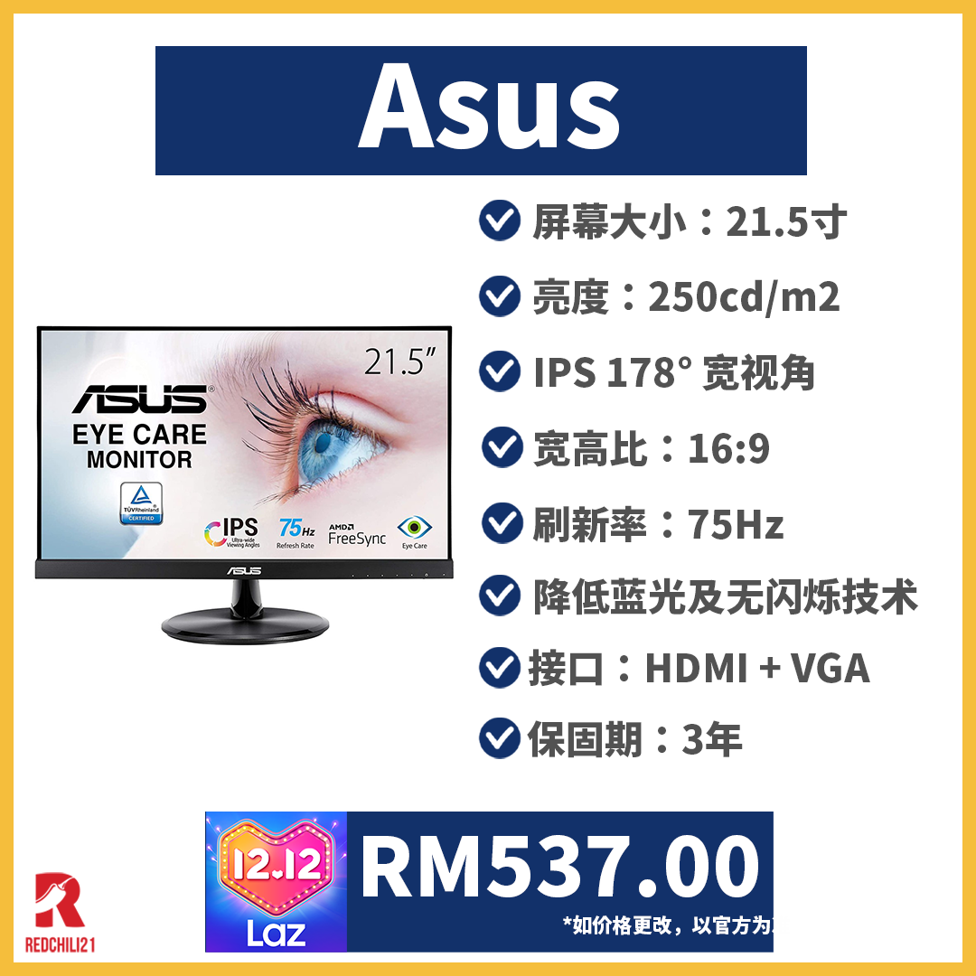 无论是工作、学习还是休闲的时候打游戏、追剧,有一个功能好又宽大的电脑显示器(Monitor)就再好不过了!以下10款来自不同品牌的monitor,全都是RM800以下就能买到!这次12.12购物节入手更便宜!