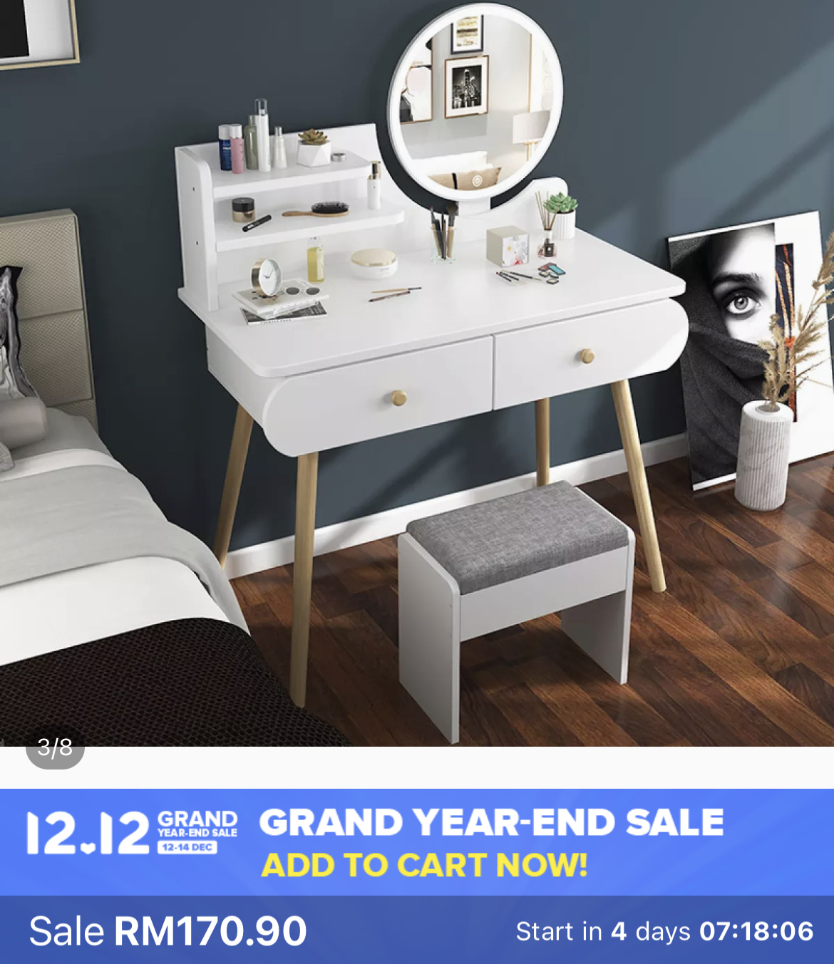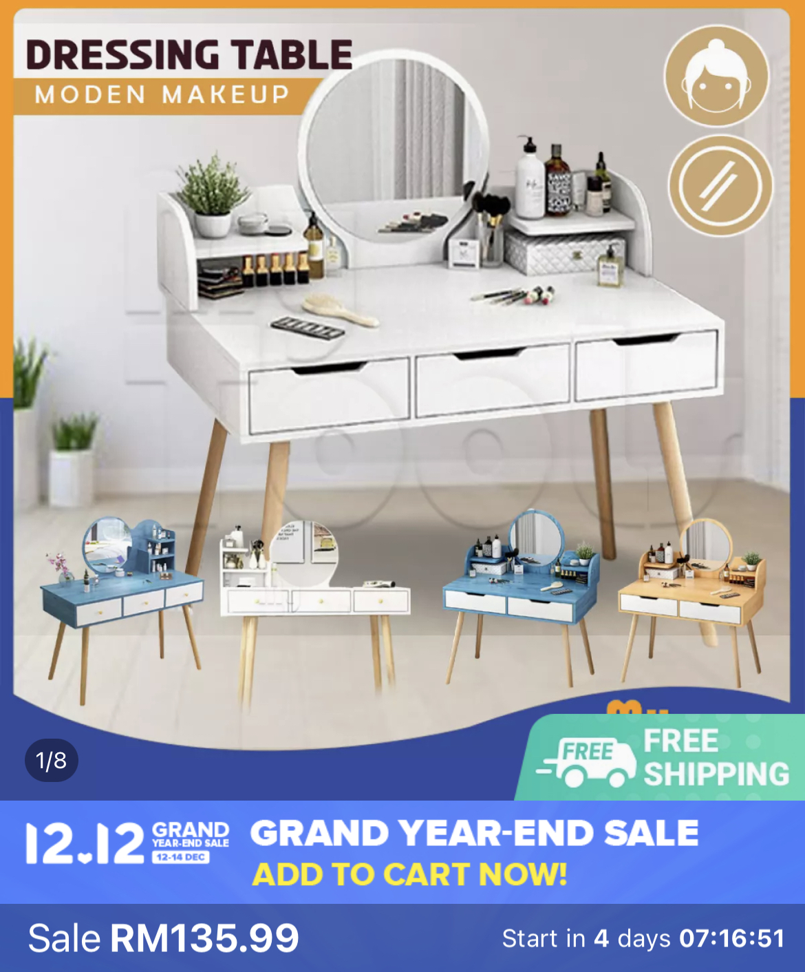 女生的房间就是要有一个好看又实用的梳妆台,那么平价的梳妆台该如何选购呢?!小编整理了 Lazada 8款网络爆款的梳妆台,12.12购物节入手最低只需不到RM40!