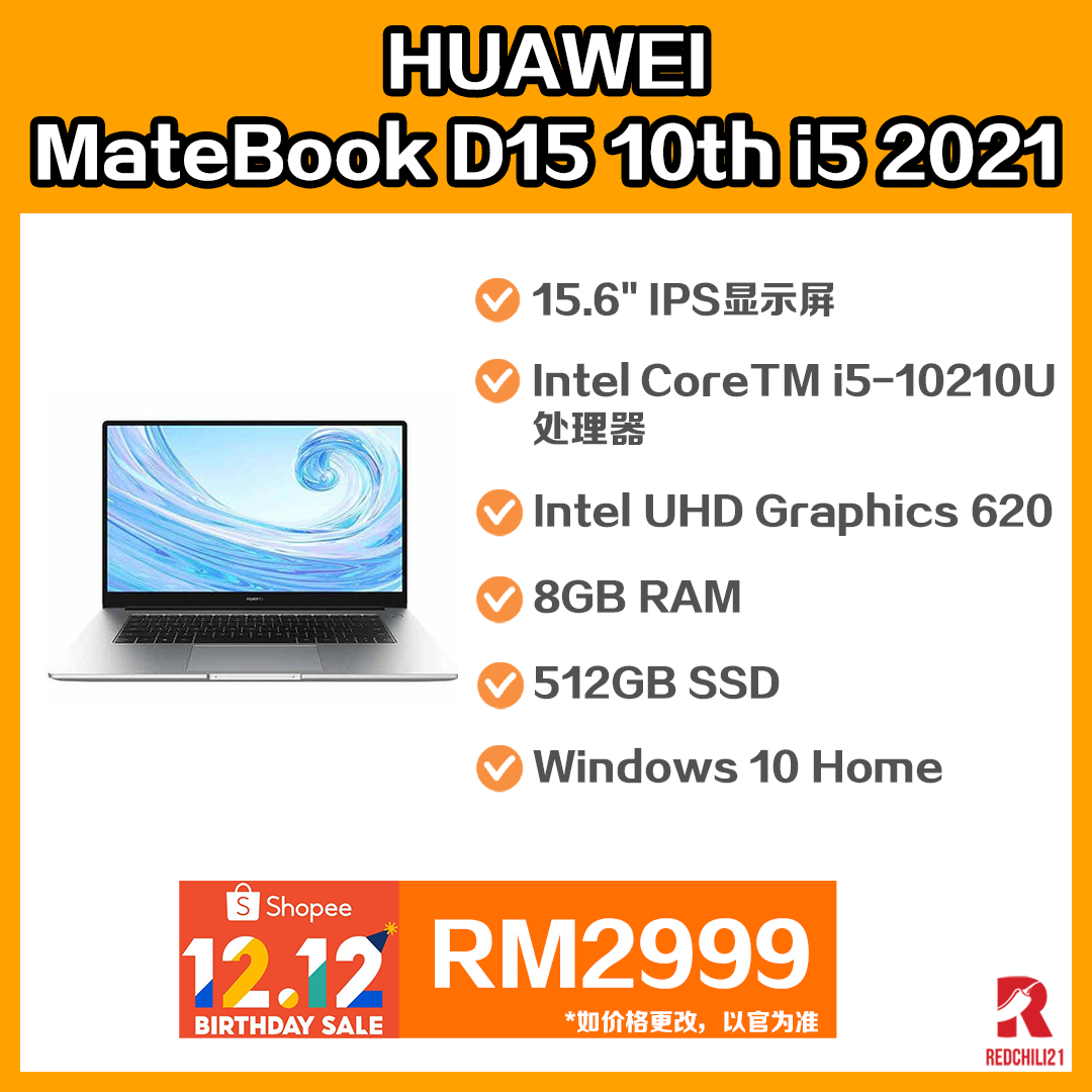 ▪ ⑤ HUAWEI MateBook D15 10th i5 2021 Laptop | Free Backpack