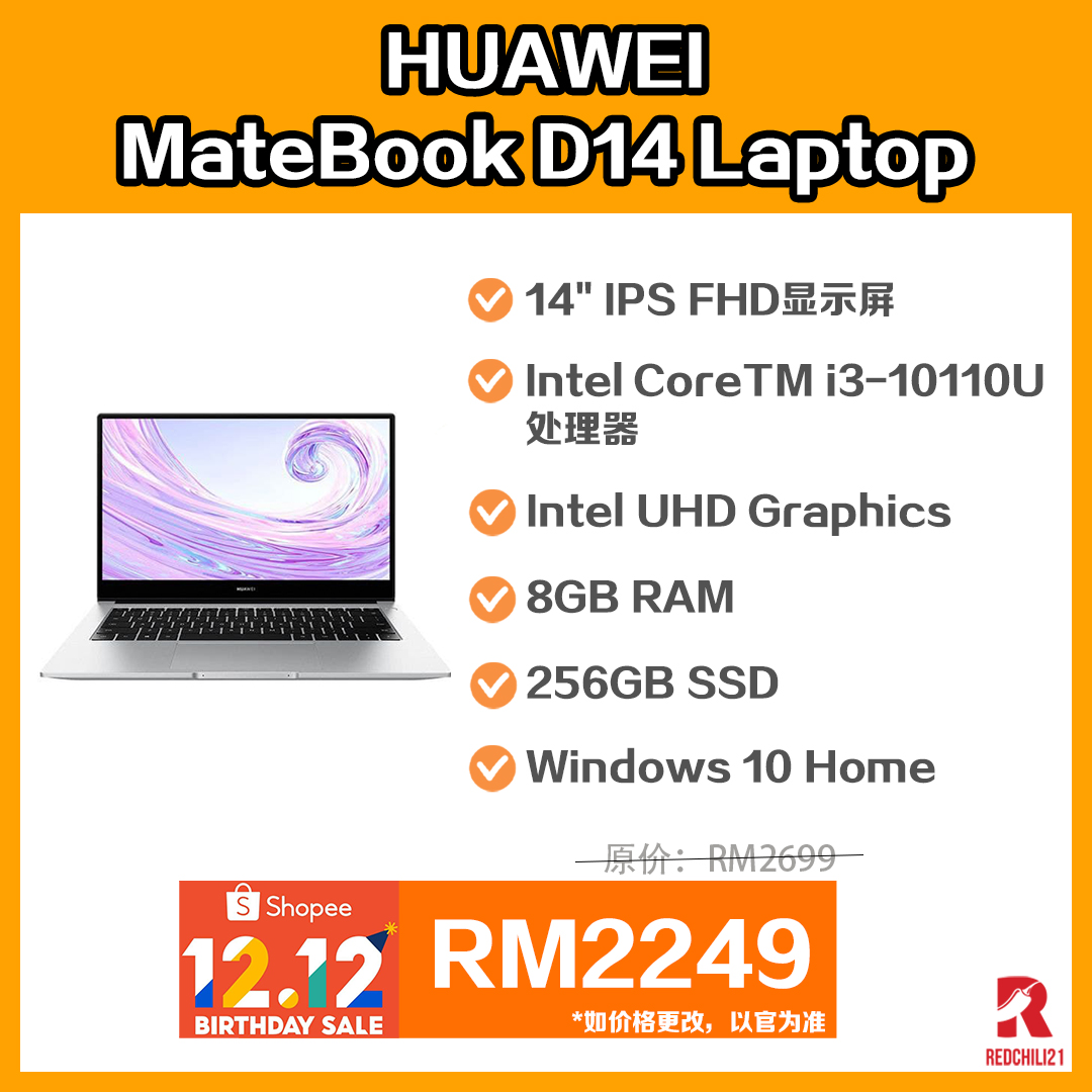 ▪ ⑥ HUAWEI MateBook D14 Laptop | 8GB+256GB | Intel CoreTM i3-10110U Processor | FREE Backpack | LTD