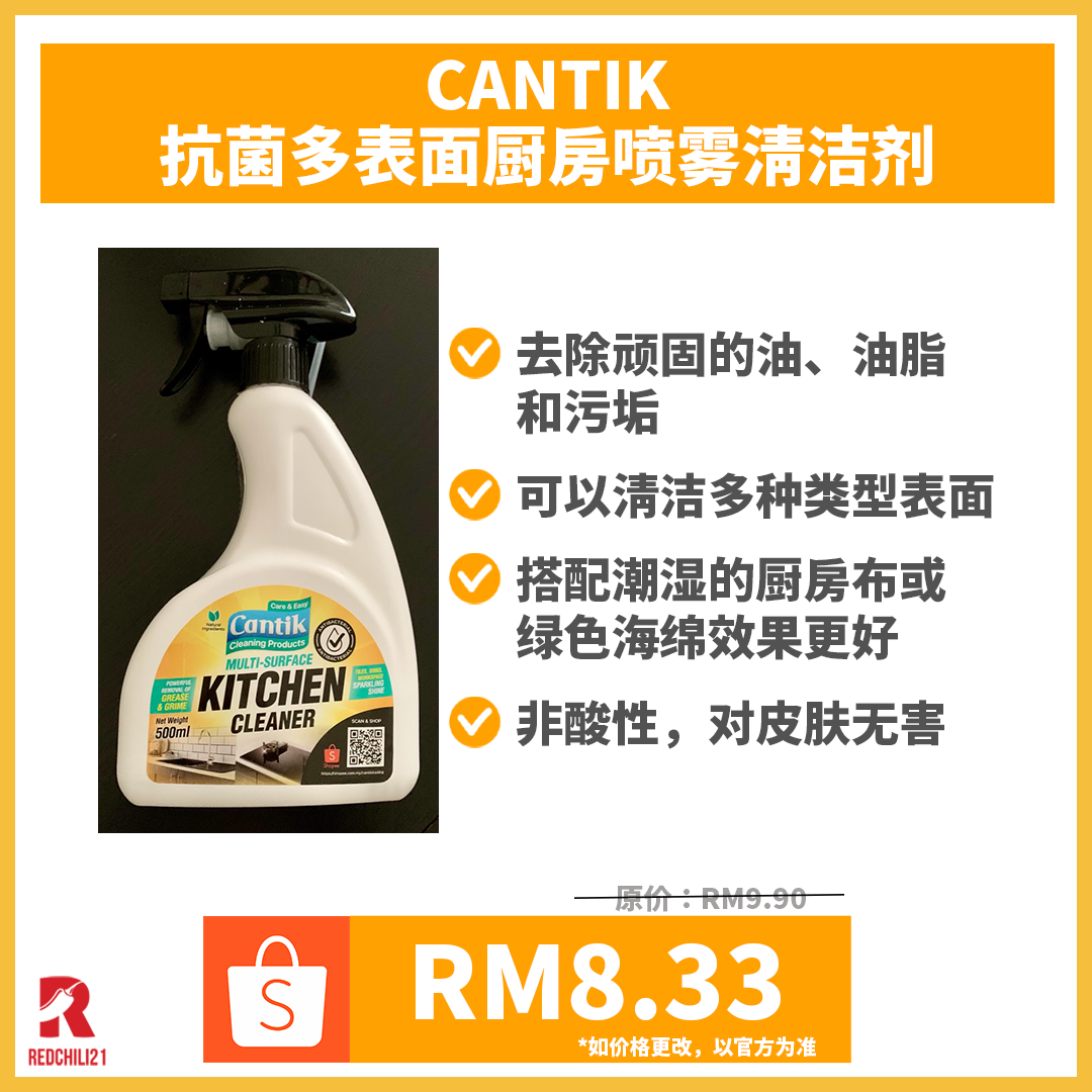 ① CANTIK Antibacterial Multi-Surface Kitchen Spray Cleaner 500ML