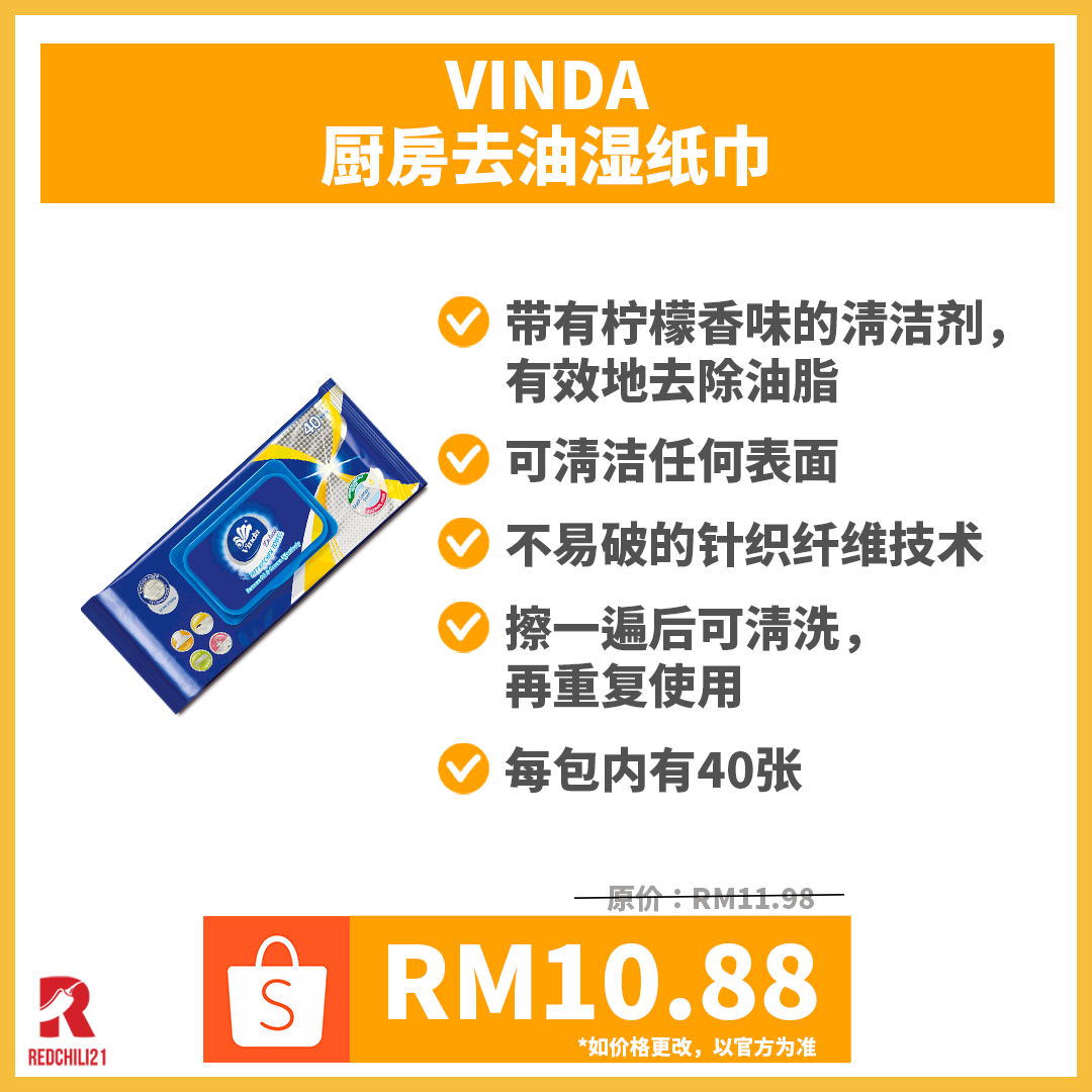 ⑤ Vinda Deluxe Kitchen Wipes 40’s
