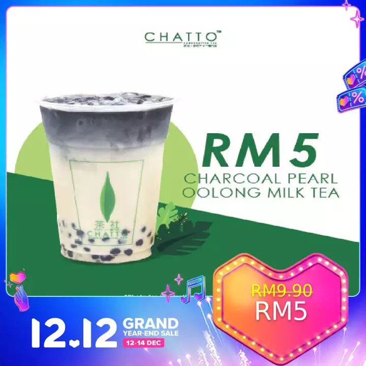 i)Chatto Charcoal Pearl Oolong Milk TeaRM9.90 RM5