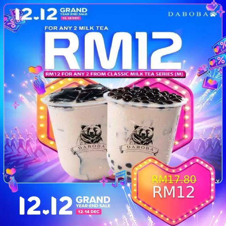 i)Any 2 Milktea Classic SeriesRM17.80 RM12(平均一杯RM6)
