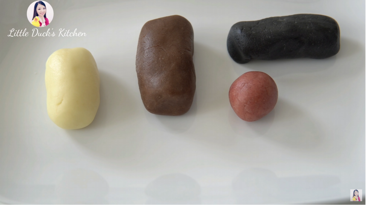 ※ 注意:分成2份,一份较多,一份较少(比较多的放入少量可可粉揉成浅,比较少的多放点可可粉揉成深色)。