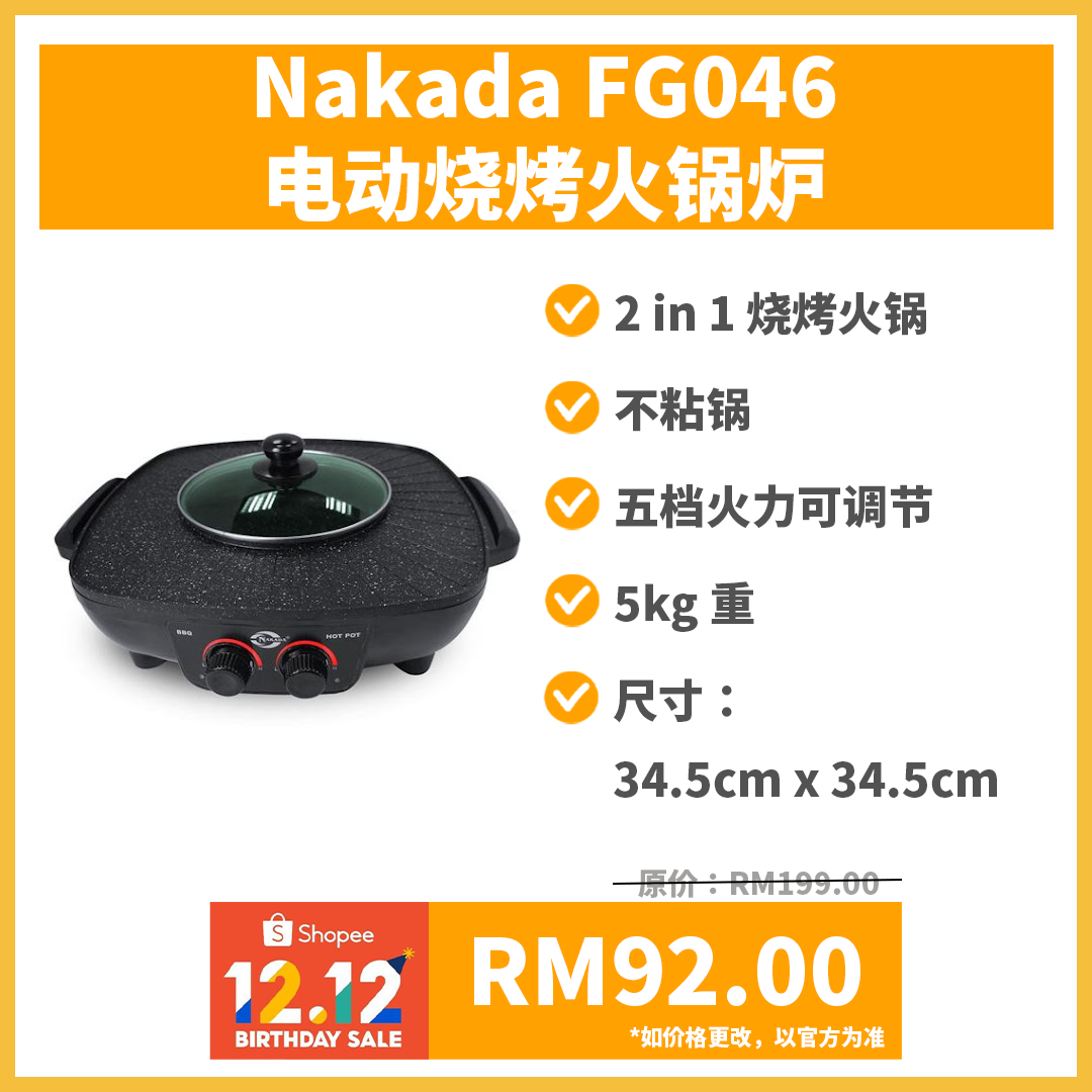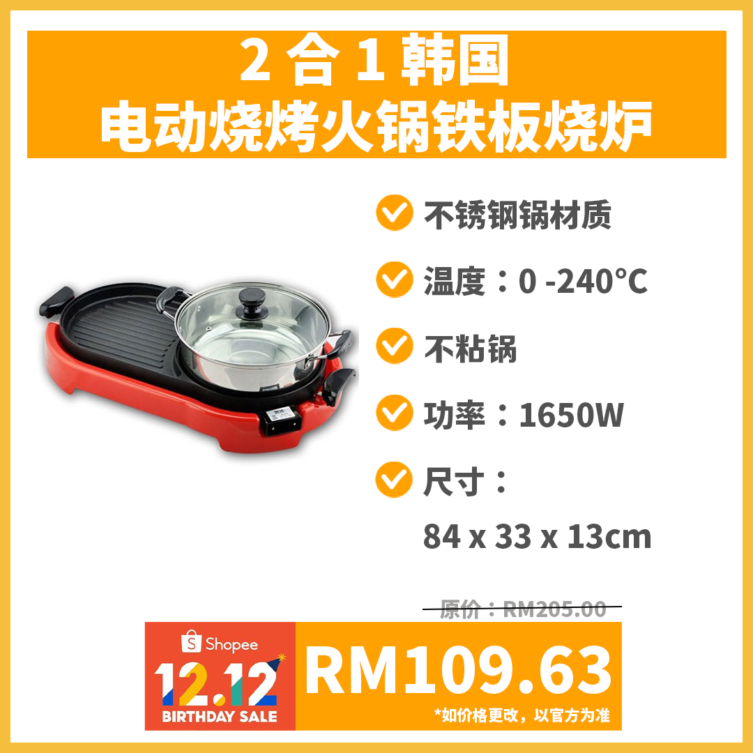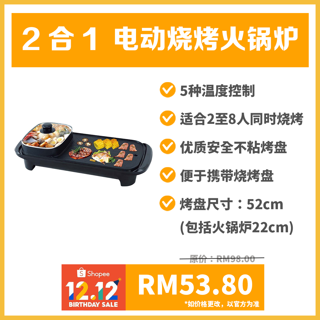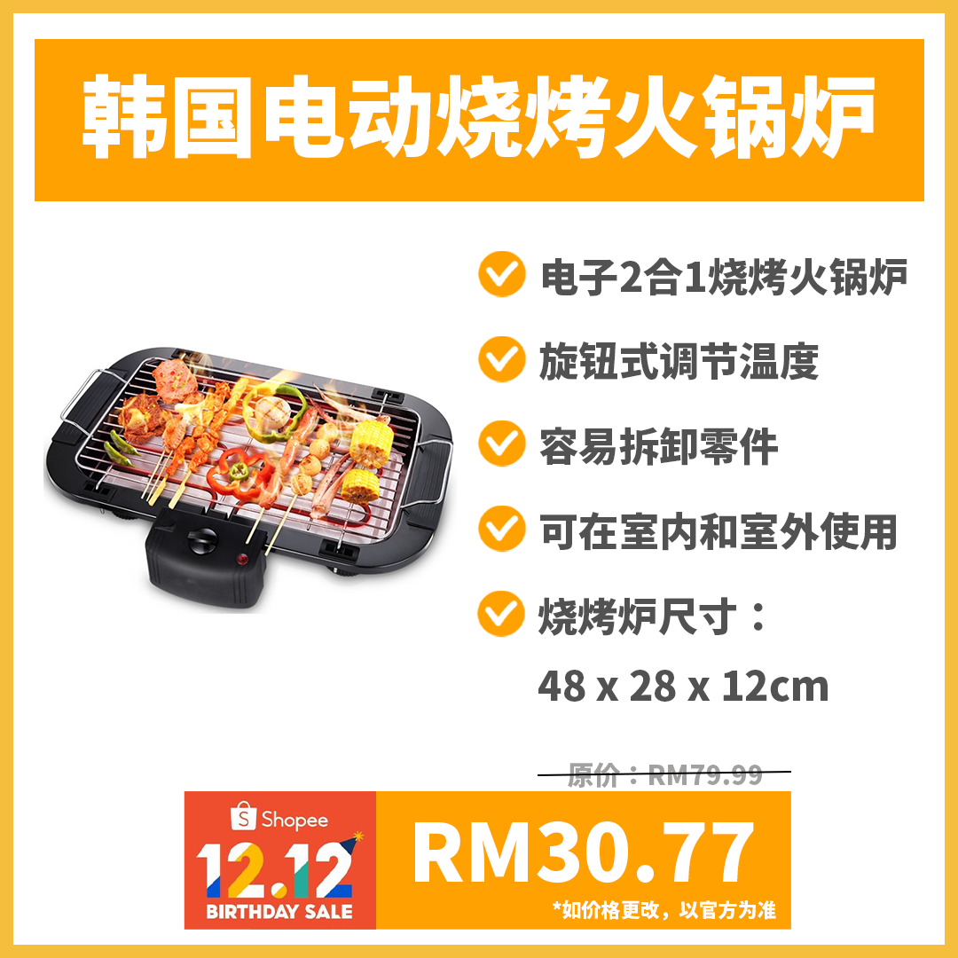 以上几款烧烤火锅炉的特别优惠价是在12月12日当天凌晨12am 至2am 推出!你可把商品加进购物车,到时直接下单就行啦!