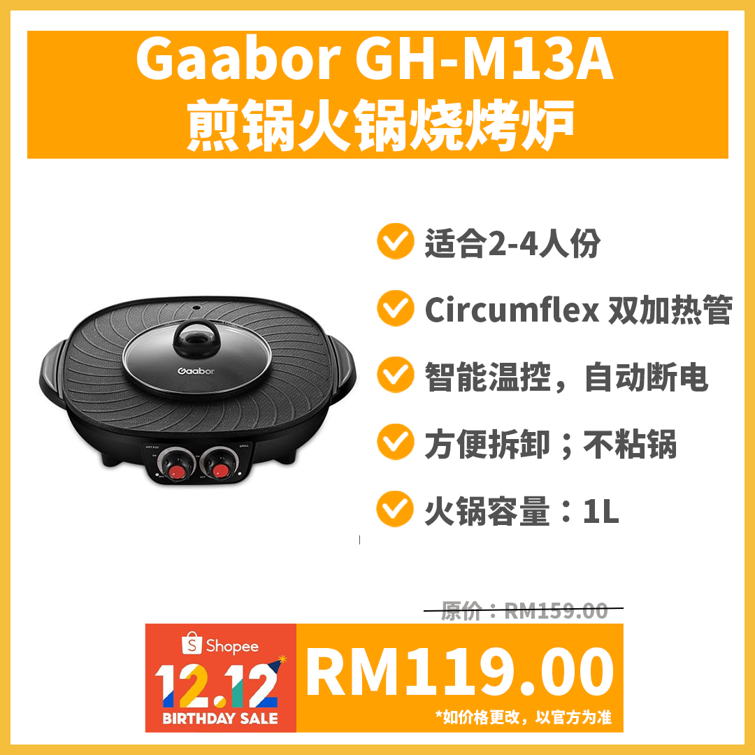 ⑤ Gaabor Frying And Hot Pot Steamboat And Grill GH-M13A