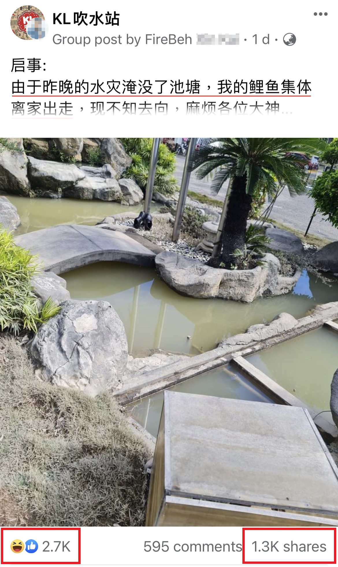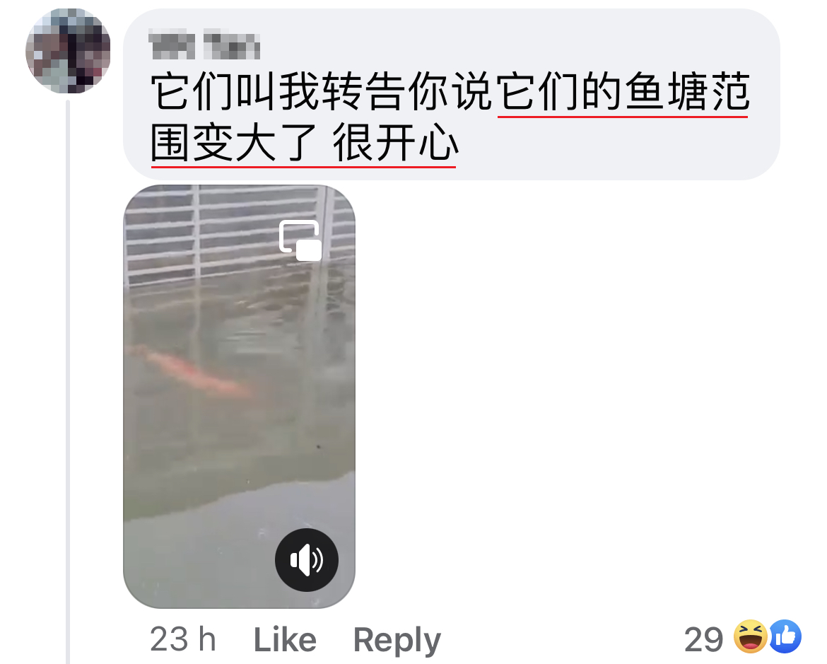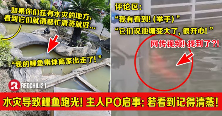 像是这位大马男子,一个晚上的水灾淹没了他一池的鲤鱼,水退去以后鱼都不见了,只好通过脸书发“寻鱼启事”,不过帖子的画风却笑翻了许多网民!