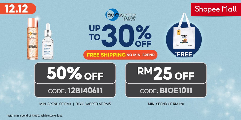 ▼ 只要你在Bio-essence Shopee官方网店 消费满RM30 或以上,就能免费获得Line Friends 透明果冻包!更值得注意的是,购买Bio-essence 产品可享有30%折扣,以及领取高达RM25 折扣券!