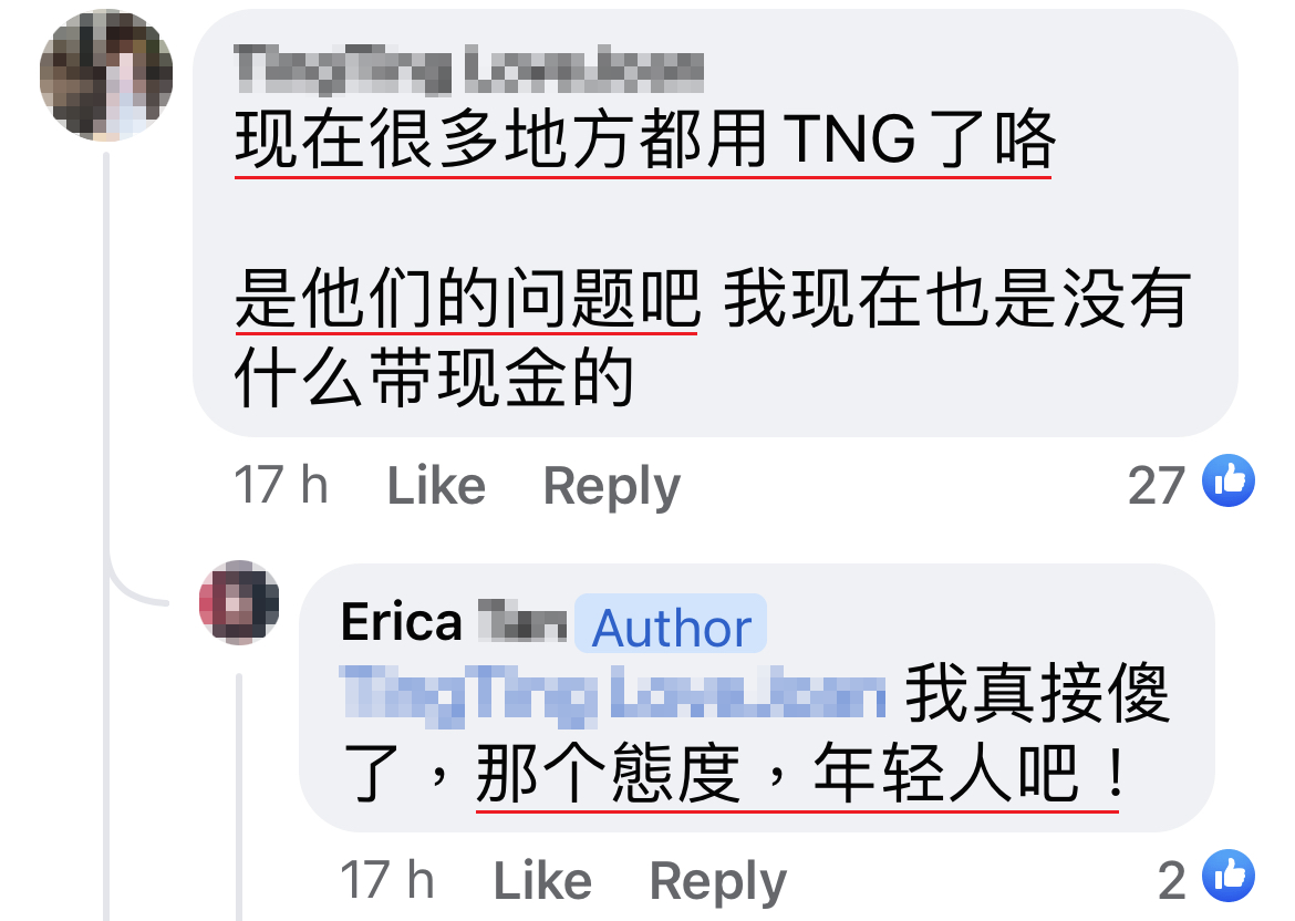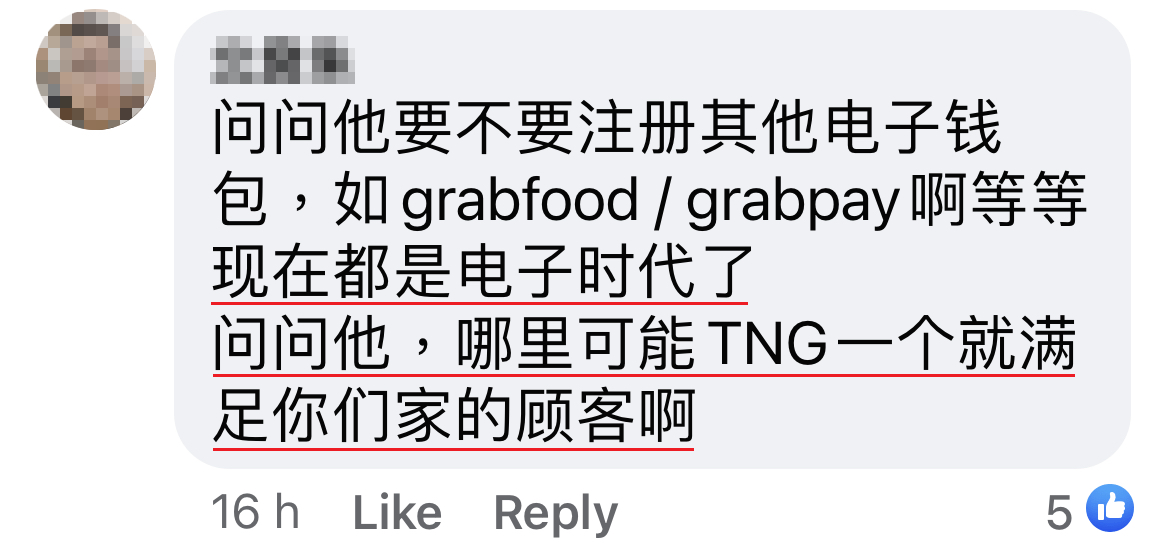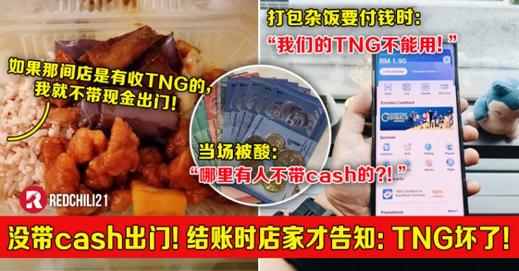 一名网友日前拿着手机去打包“杂饭”,结账的时候才得知店家的 TNG 系统故障,不能用 App 支付,当下还被收银员酸:「哪里有人出门不带现金的?」令他感到很无言。