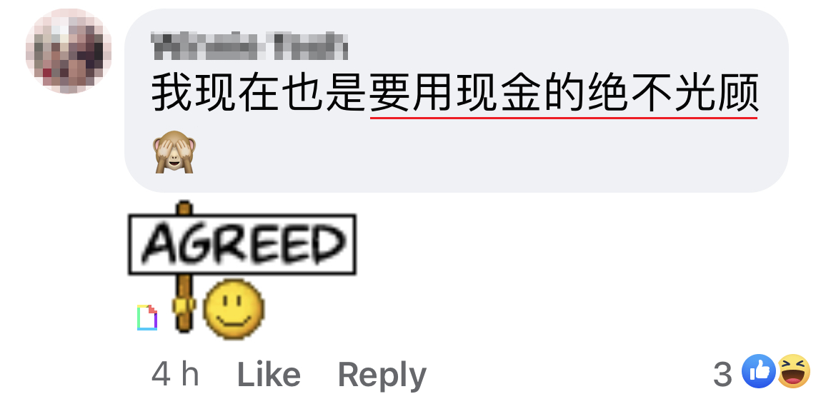 ▼ 网友们表示:不能 cashless 支付就直接不光顾了。