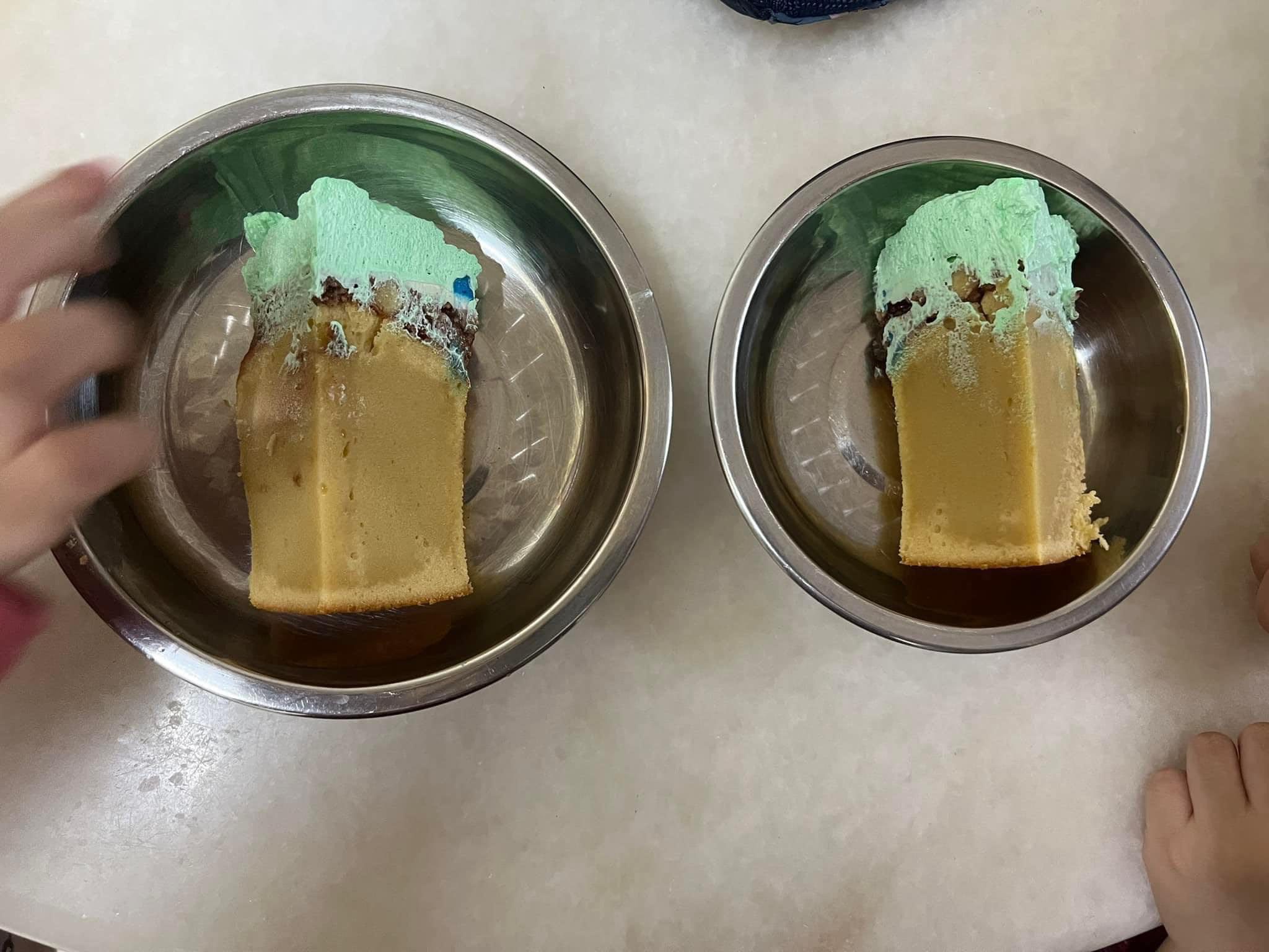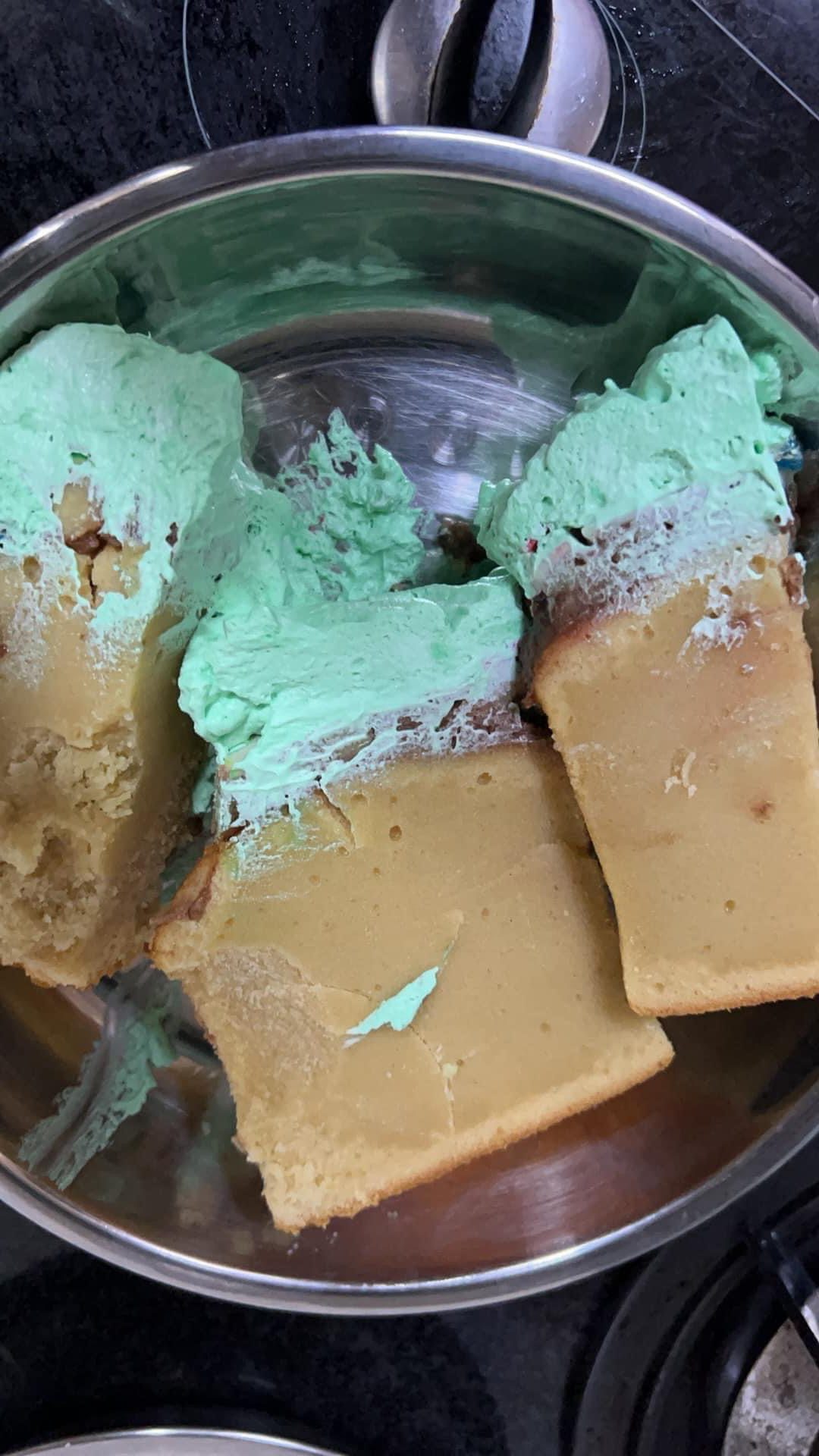 ▼ 切开蛋糕,竟然发现里面没熟!