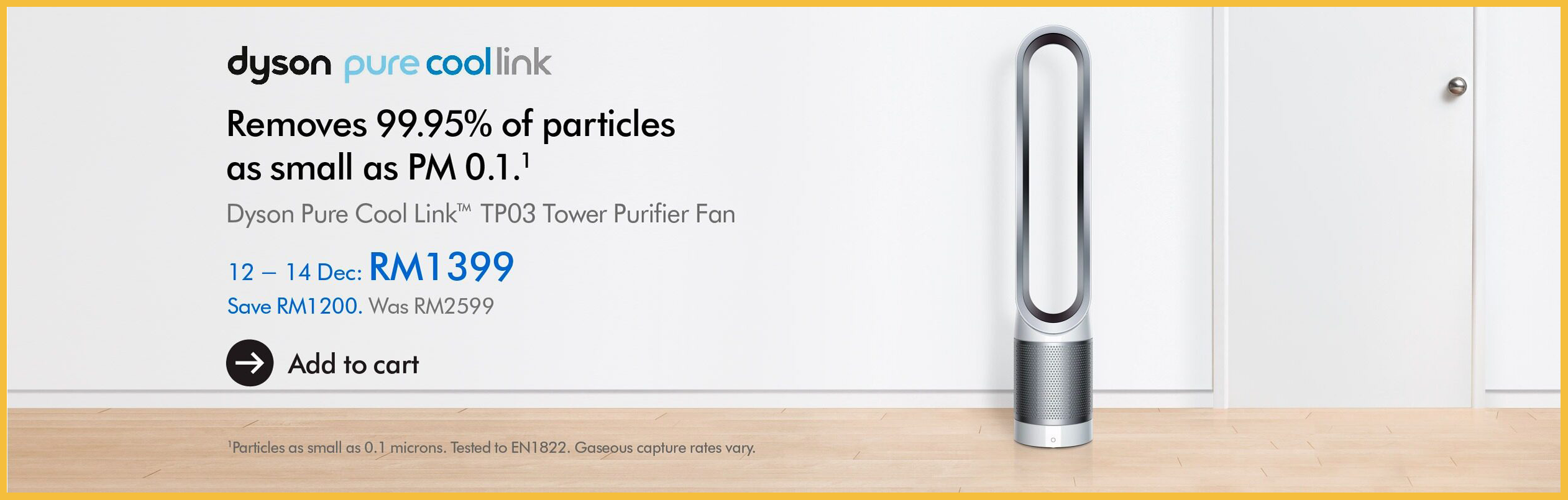 ▼ Dyson Pure Cool Link air purifier tower fan TP03 (White/Silver) – RM1399(原价RM2599;节省RM1200)