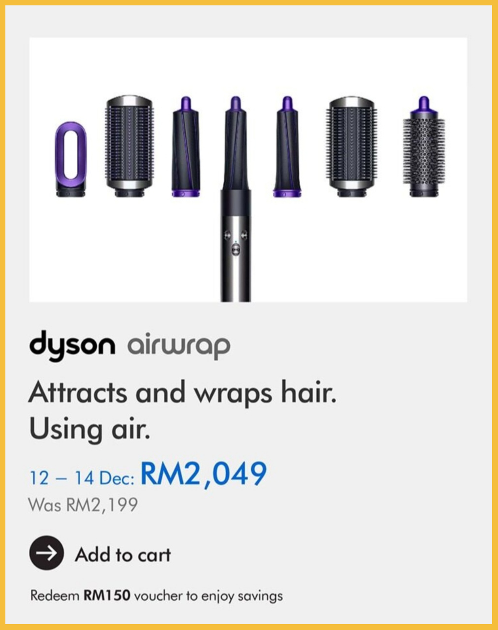 ▼ Dyson Airwrap Hair Styler Complete – RM2049(原价RM2199;节省RM150)