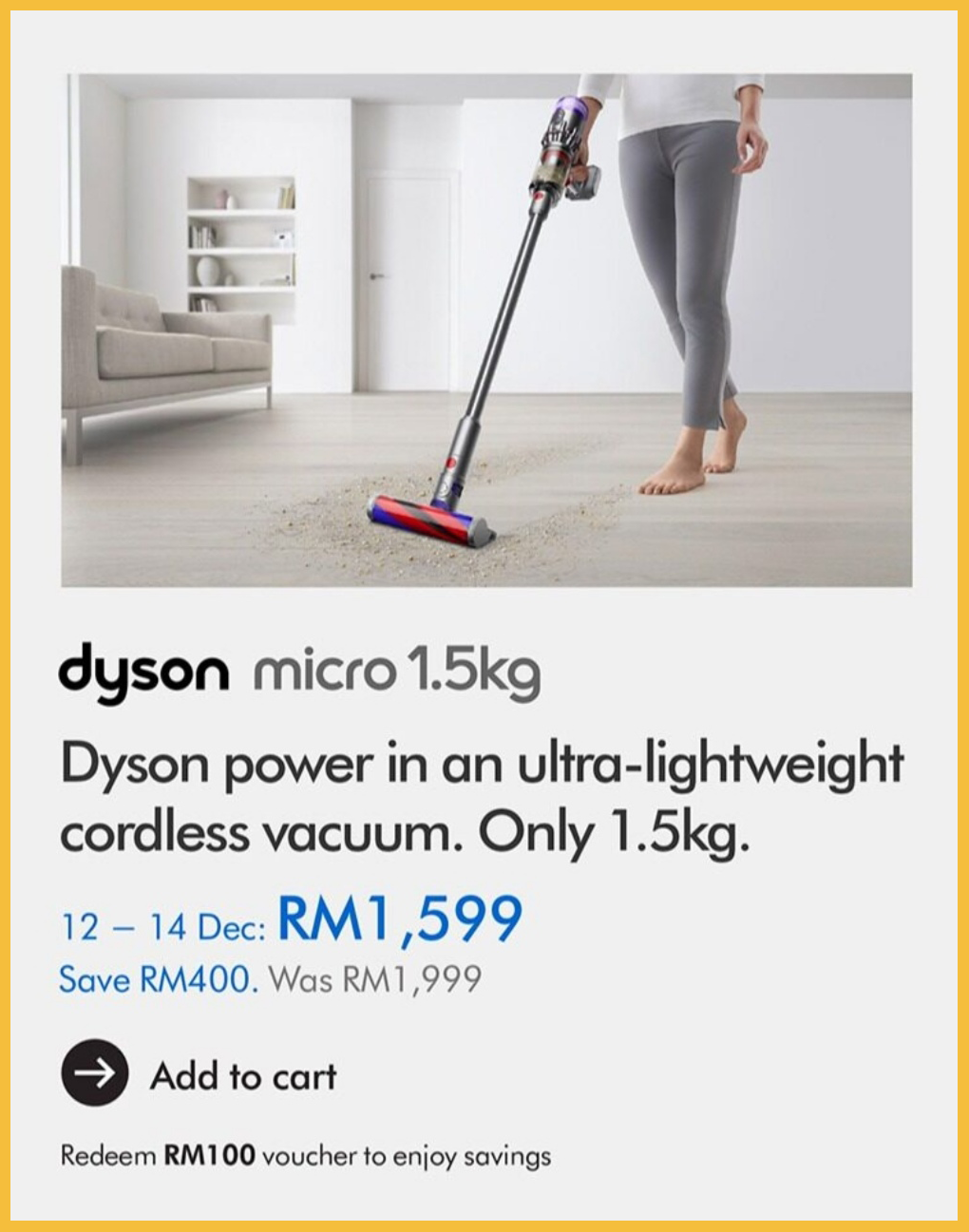 ▼ Dyson Micro 1.5kg Vacuum Cleaner – RM1599(原价RM1999;节省RM400)